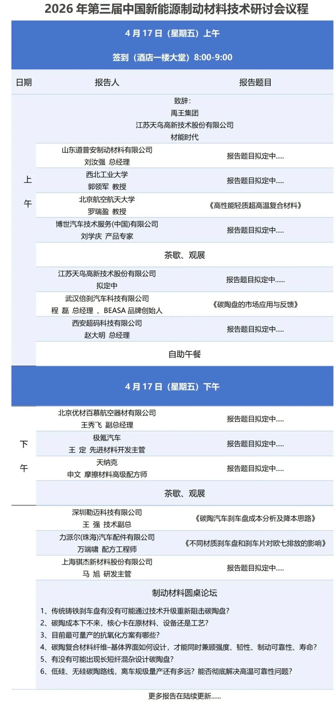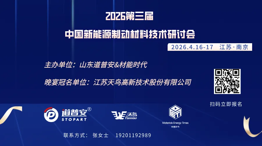 江苏江拓力杨新材料科技有限公司诚挚地邀请您参加2026年4月16-17日于南京举行的“2026年第三届中国新能源制动材料技术研讨会”。本届会议由山东道普安制动材料有限公司与材能时代联合主办,江苏天鸟高新技术股份有限公司晚宴赞助。期待与您相聚南京,共议行业前沿技术与发展。