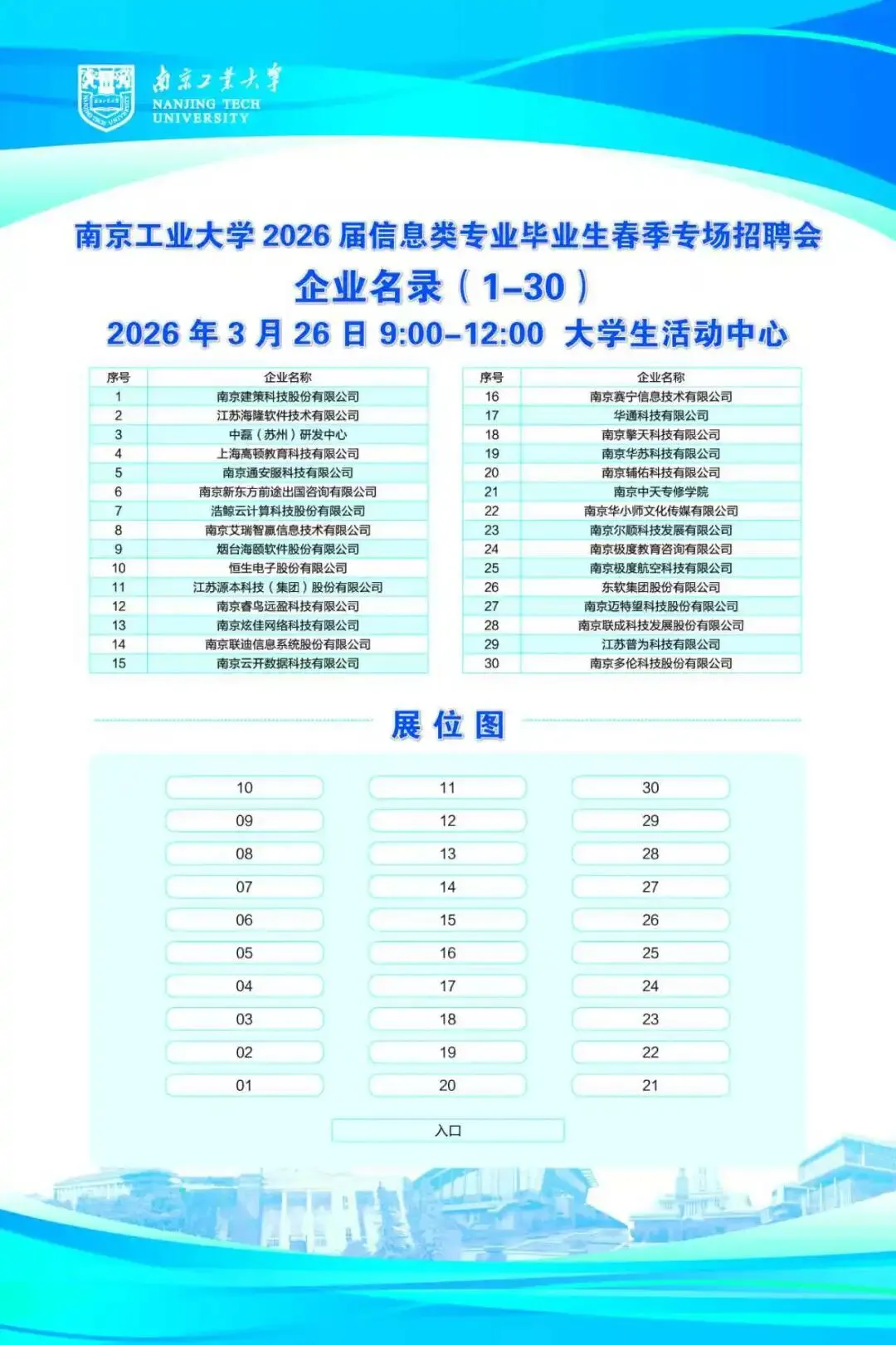 >招聘会|南京工业大学2026届信息类专业毕业生春季专场招聘会