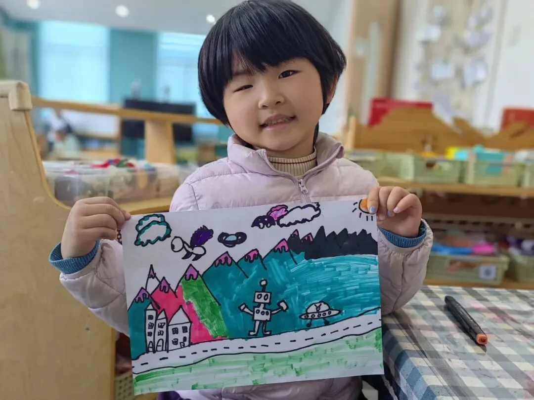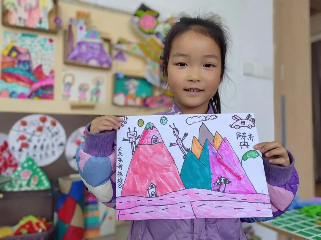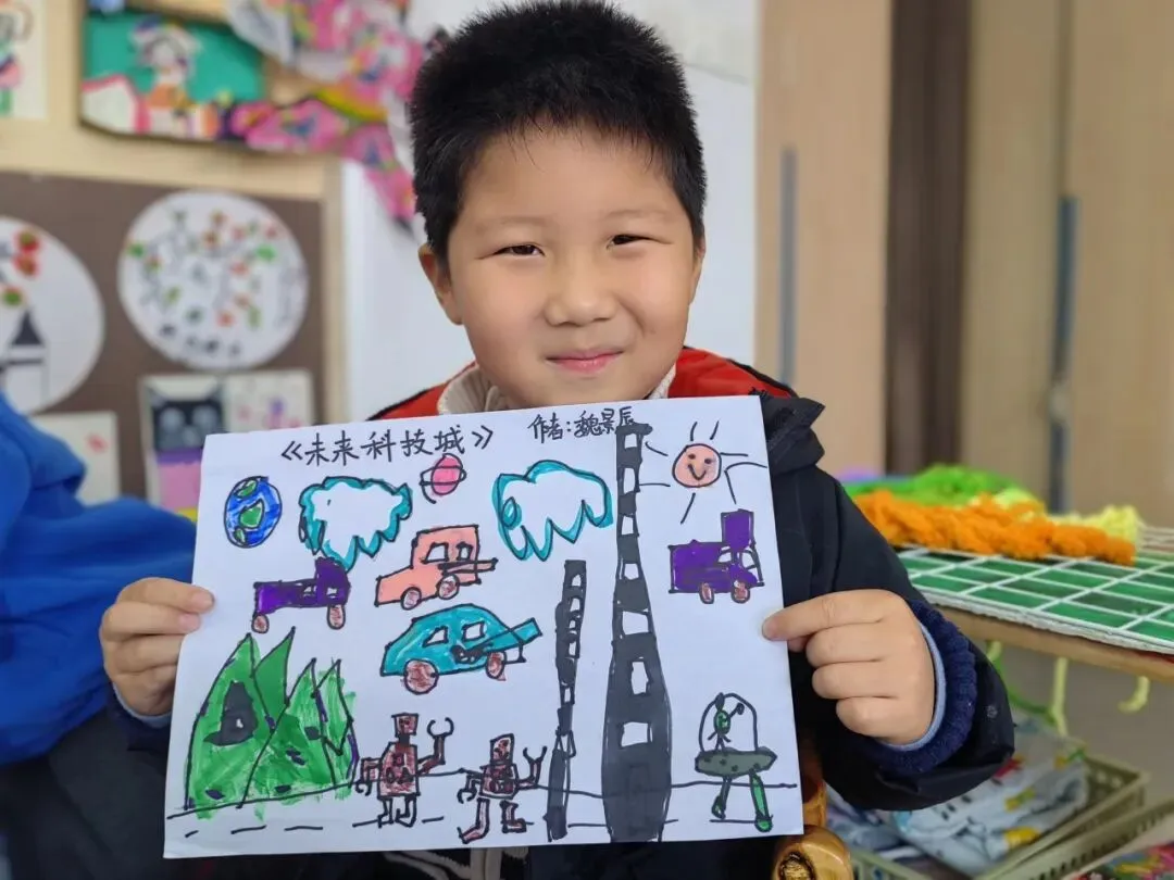孩子们用自己的双手勾勒出了心目中的未来科技城,这是对科技的美好憧憬。每一段色彩,每一个线条,都饱含着他们对未来的美好期待。这个世界,终将在他们手中熠熠生辉。