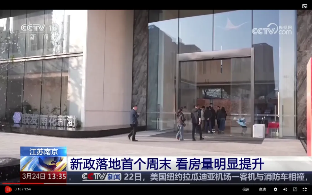 在政策红利与市场回暖的双重推动下,联发雨花新澍凭借扎实的产品力与持续的热销表现强势出圈,登上CCTV新闻频道、CCTV财经频道,亮相江苏电视台江苏新闻频道,成为楼市新政落地、人才安居圆梦的典型样本。