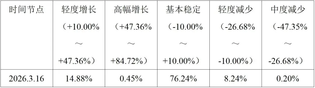 - 中度减少(-47.35% ~ -26.68%):占比 0.20%;