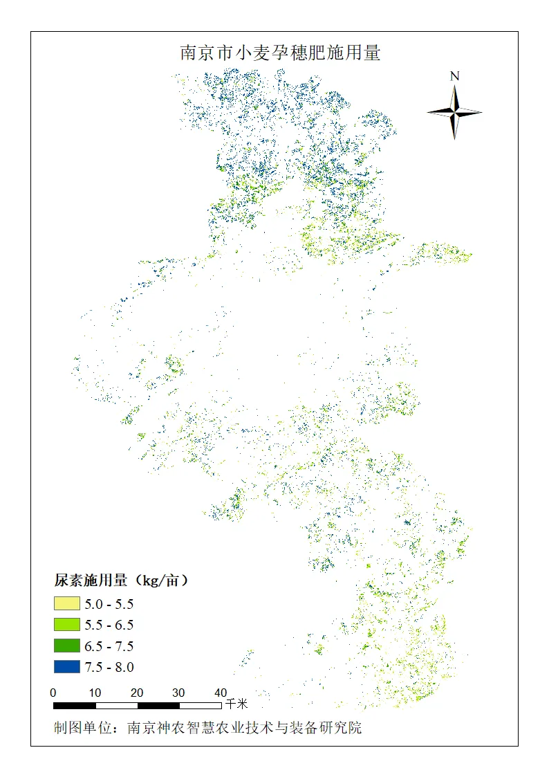 图5 南京市小麦孕穗期施肥量分布图