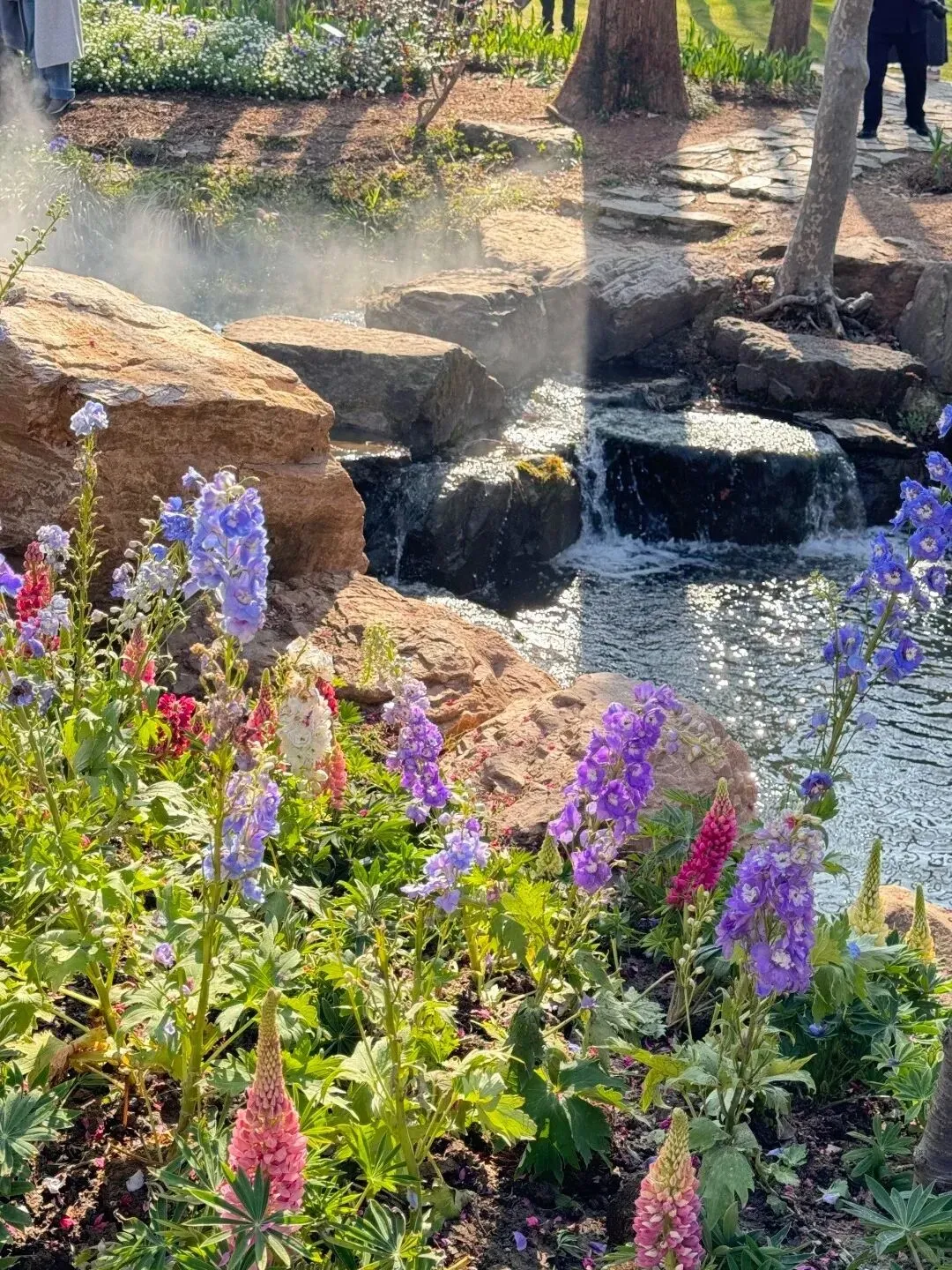 杜鹃园附近有二月兰,配假山瀑布,人少安静。