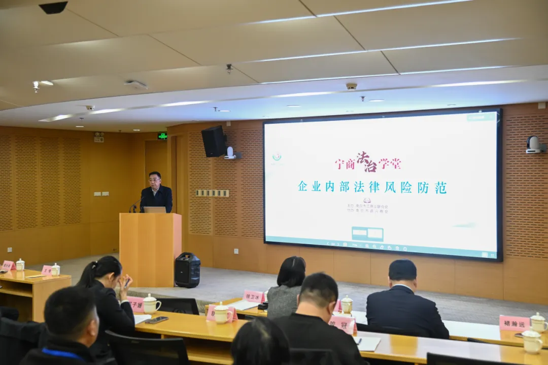 市工商联联合栖霞区工商联、南京市嘉兴商会举办第二十二期“宁商法治学堂”,邀请市区检察机关有关负责人和市工商联法律顾问就企业商业秘密侵犯与保护、企业内部职务犯罪风险防控、企业全生命周期风险管控与账款催收等企业内部法律风险防范主题进行宣讲。