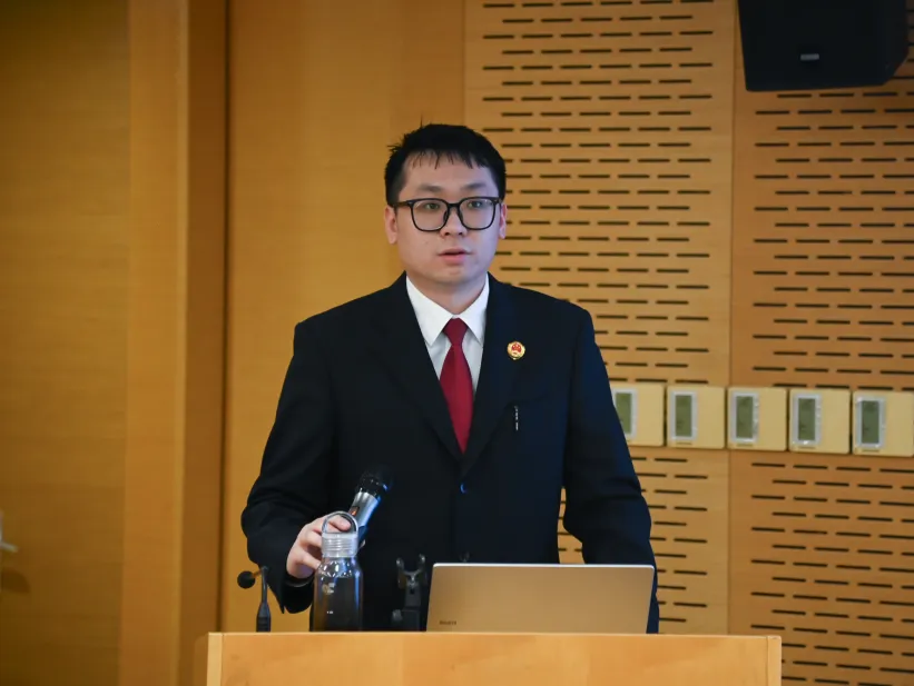 栖霞区检察院第二检察部检察官刘怀宇以《法护商途 廉筑基石--企业内部职务犯罪的预防》为题进行宣讲。