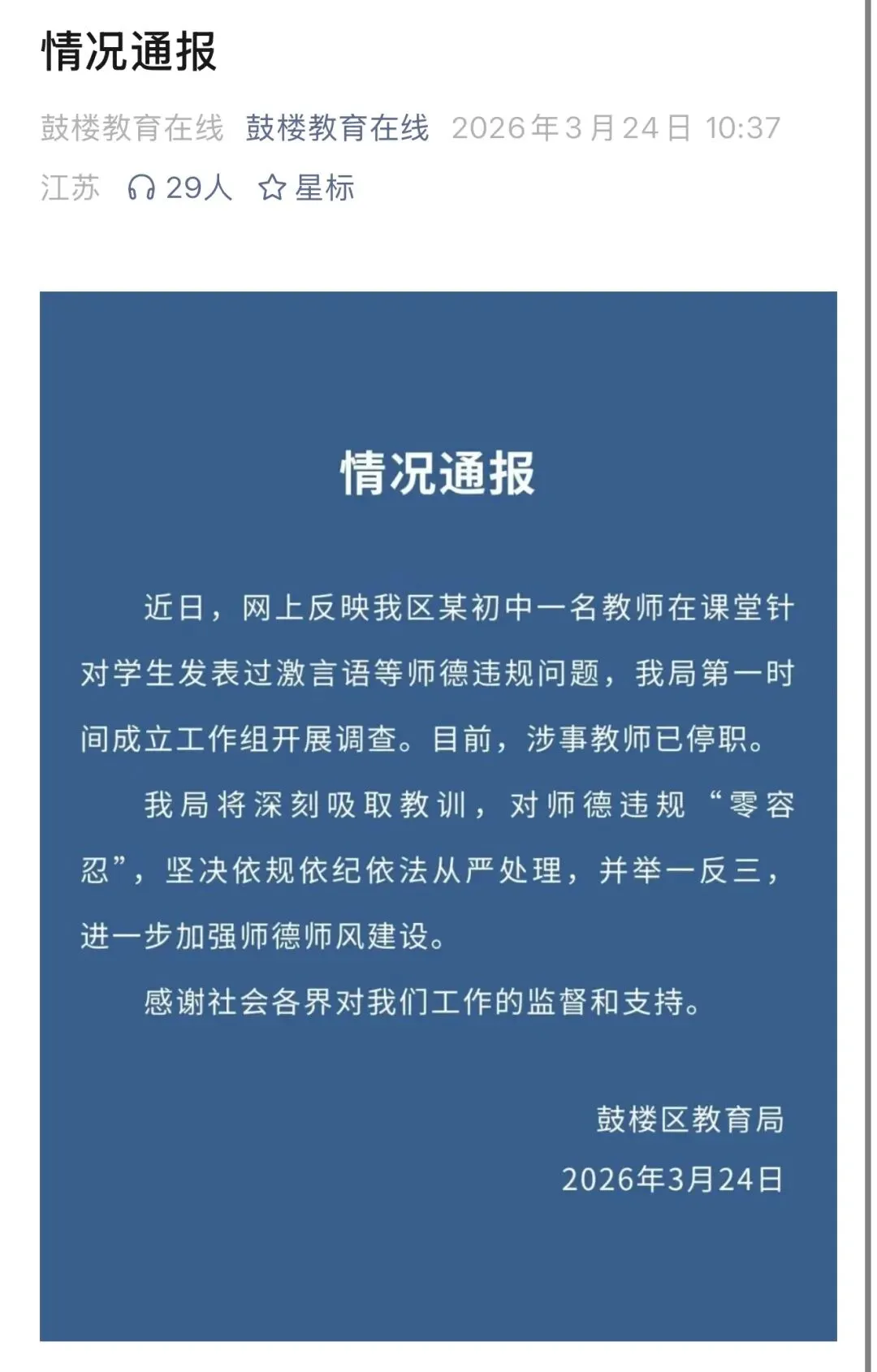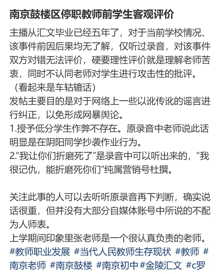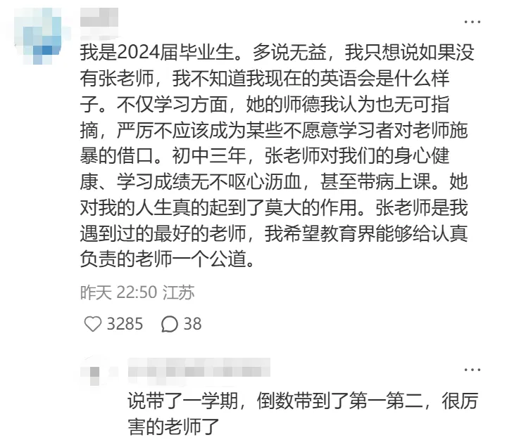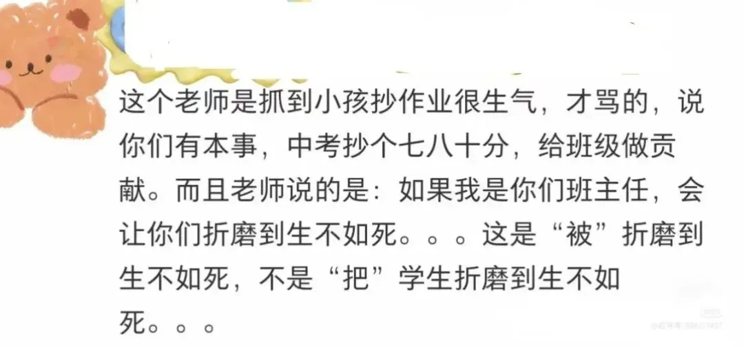 这位家长也提出了一个直击灵魂的问题,“老师的批评或许言辞激烈,但我们扪心自问,平时在家中管教孩子时,我们的语气难道就温和吗?……老师也是普通人,在恨铁不成钢的焦急时刻,难免会口不择言。”