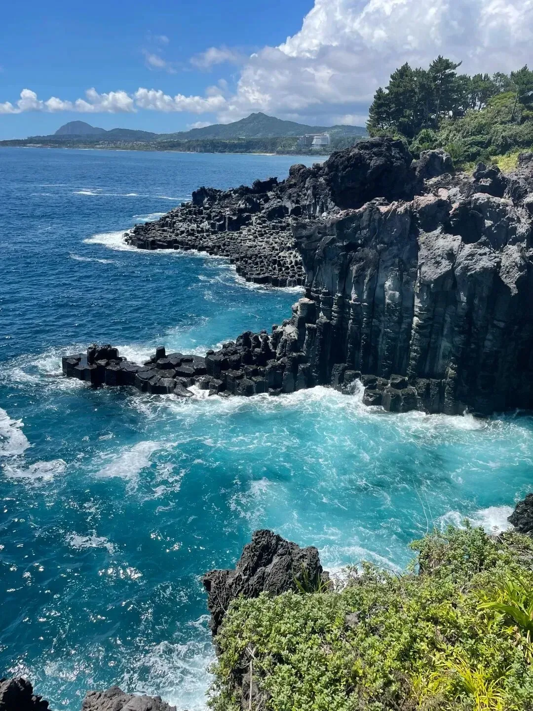 济州岛海岸线奇观之多让人目不暇接,长达 1000 米、高达 40 米的黑色岩石带,便是柱状节理带它的形成其实是热胀冷缩的原理,几十万年前,济州岛最高峰汉拿山火山爆发时急速冷却而形成的最独特的海岸自然奇观。