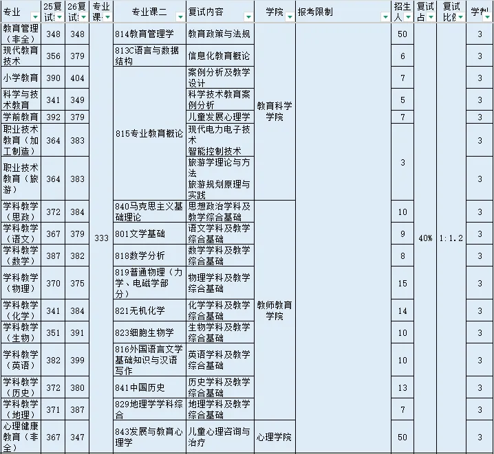 南京师范大学历年复试录取情况见上文表格