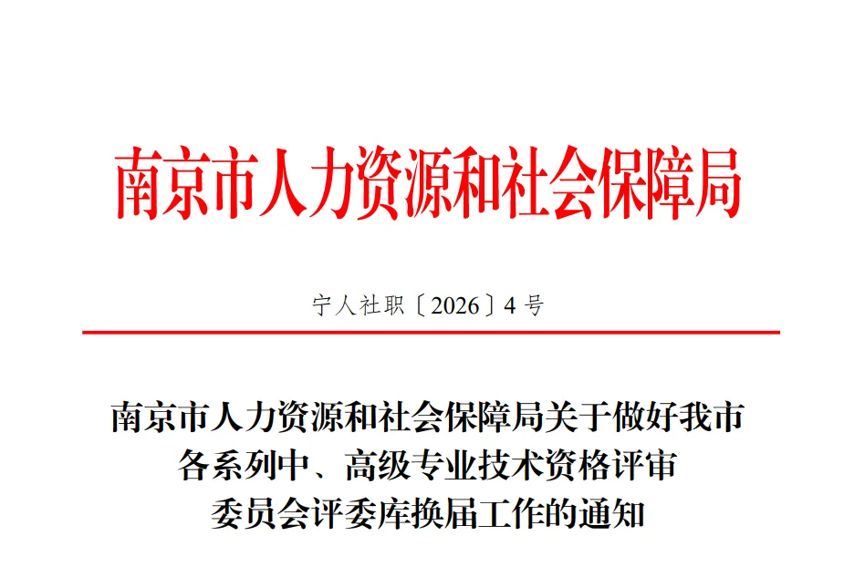 各位行业专家、技术骨干请注意!南京市2026年各系列中、高级专业技术资格评审委员会评委库换届工作已正式启动。