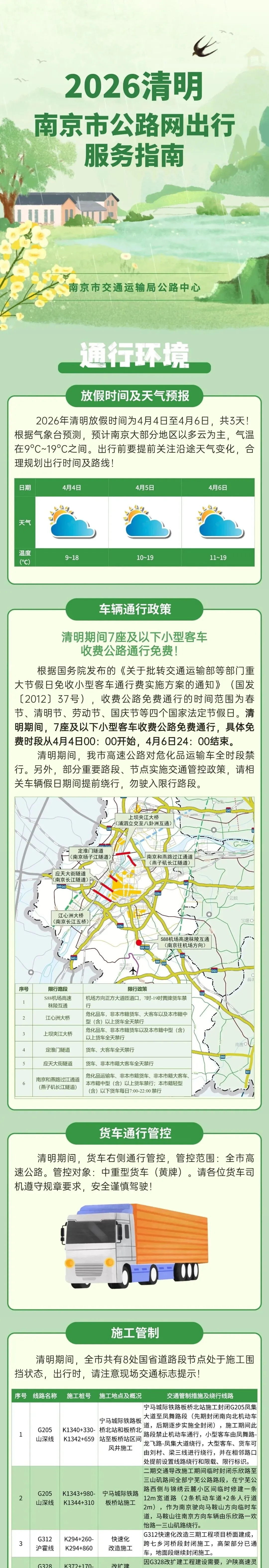 2026清明南京市公路网出行服务指南