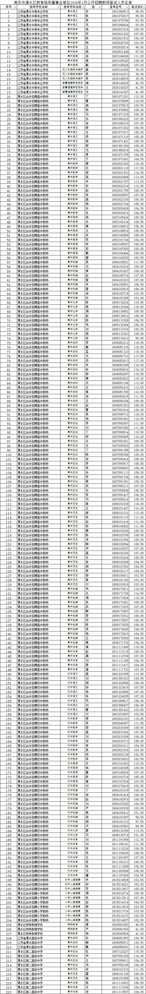 南京市溧水区教育局所属事业单位2026年1月公开招聘教师根据《南京市溧水区教育局所属事业单位2026年1月公开招聘教师公告》(溧事招公告(R)〔2026〕1号) 的要求,现将溧水区教育局所属事业单位2026年1月公开招聘教师面试人员名单予以公布,同时就面试相关事项通知如下: