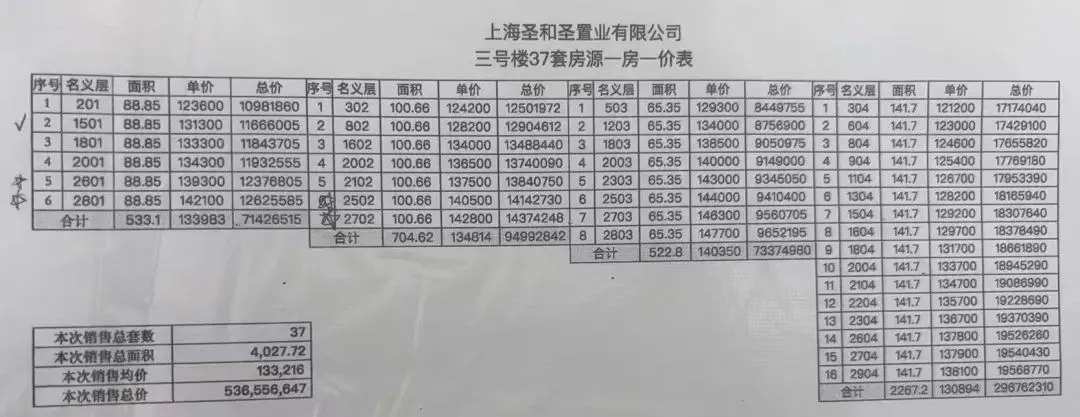 最新一房一价表: