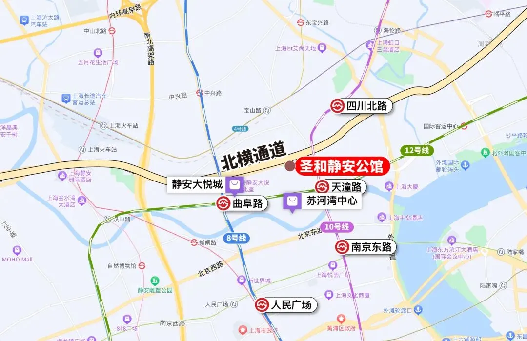 圣和静安公馆位于静安区苏河湾正中心,坐拥外滩、人民广场、南京路、不夜城等重量级商圈,轨道交通8、10、12号线便捷出行,内环、北横通道、南北高架连纵全城,无缝对接人民广场、陆家嘴、外滩等繁华生活圈。