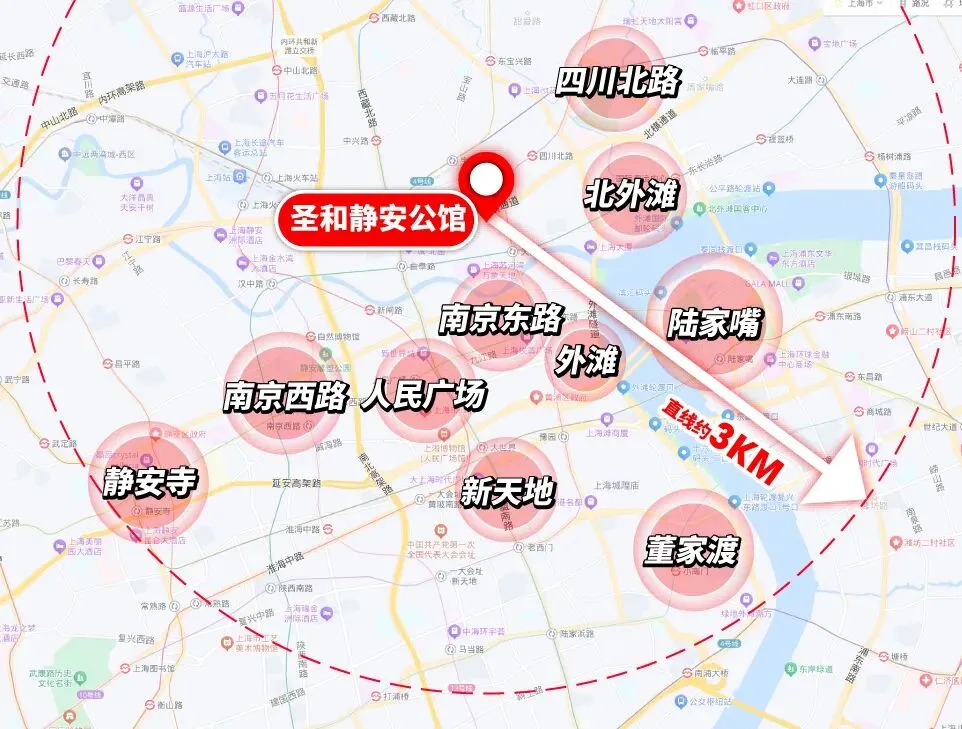 同时项目直线距离3公里内,涵盖陆家嘴、人民广场、静安寺、南京西路、南京东路、外滩、新天地等城市CBD。