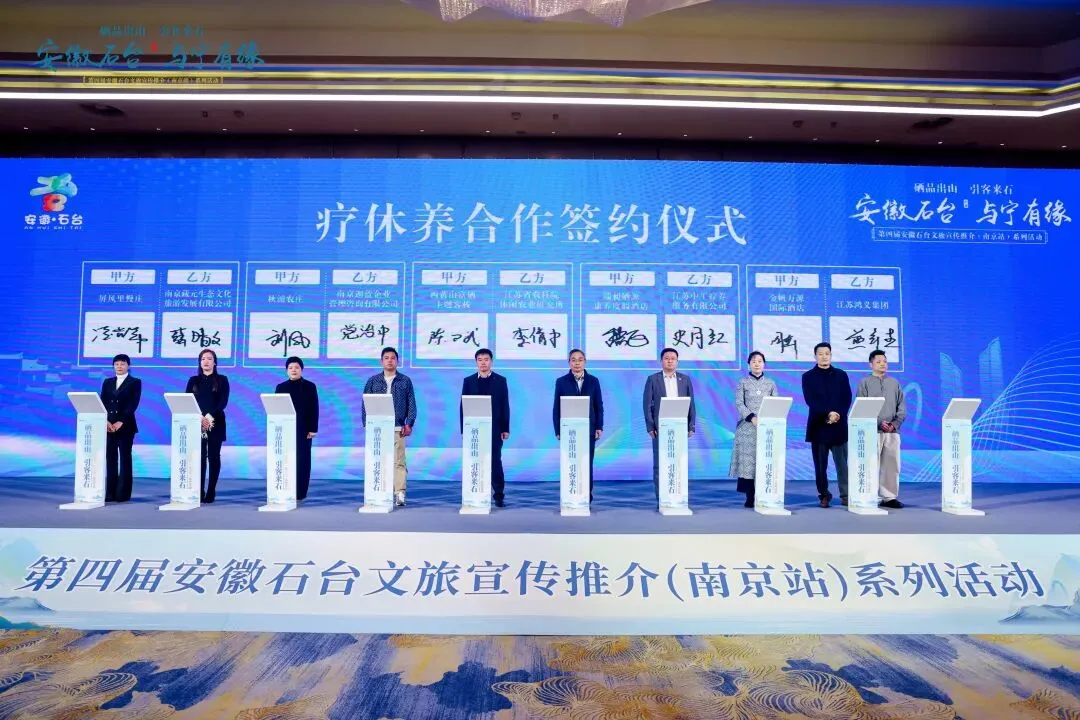 春风送暖,相约金陵。3月24日,第四届安徽石台文旅宣传推介(南京站) 系列活动在六朝古都南京圆满落幕。为进一步拓宽石台疗休养客源市场,擦亮生态康养、富硒文旅特色名片,县总工会精心组织县内五家省级职工疗休养基地组团参展,借力文旅推介平台,精准对接南京优质企业资源,成功举行疗休养合作签约仪式,为全县职工疗休养事业高质量发展注入全新动能。