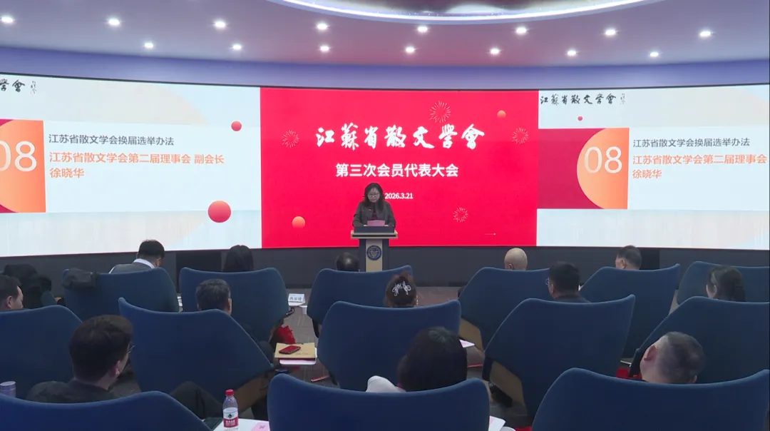 3月21日,江苏省散文学会第三次会员代表大会在南京一中顺利召开。全省散文界代表齐聚百年校园,共话文学发展新篇。