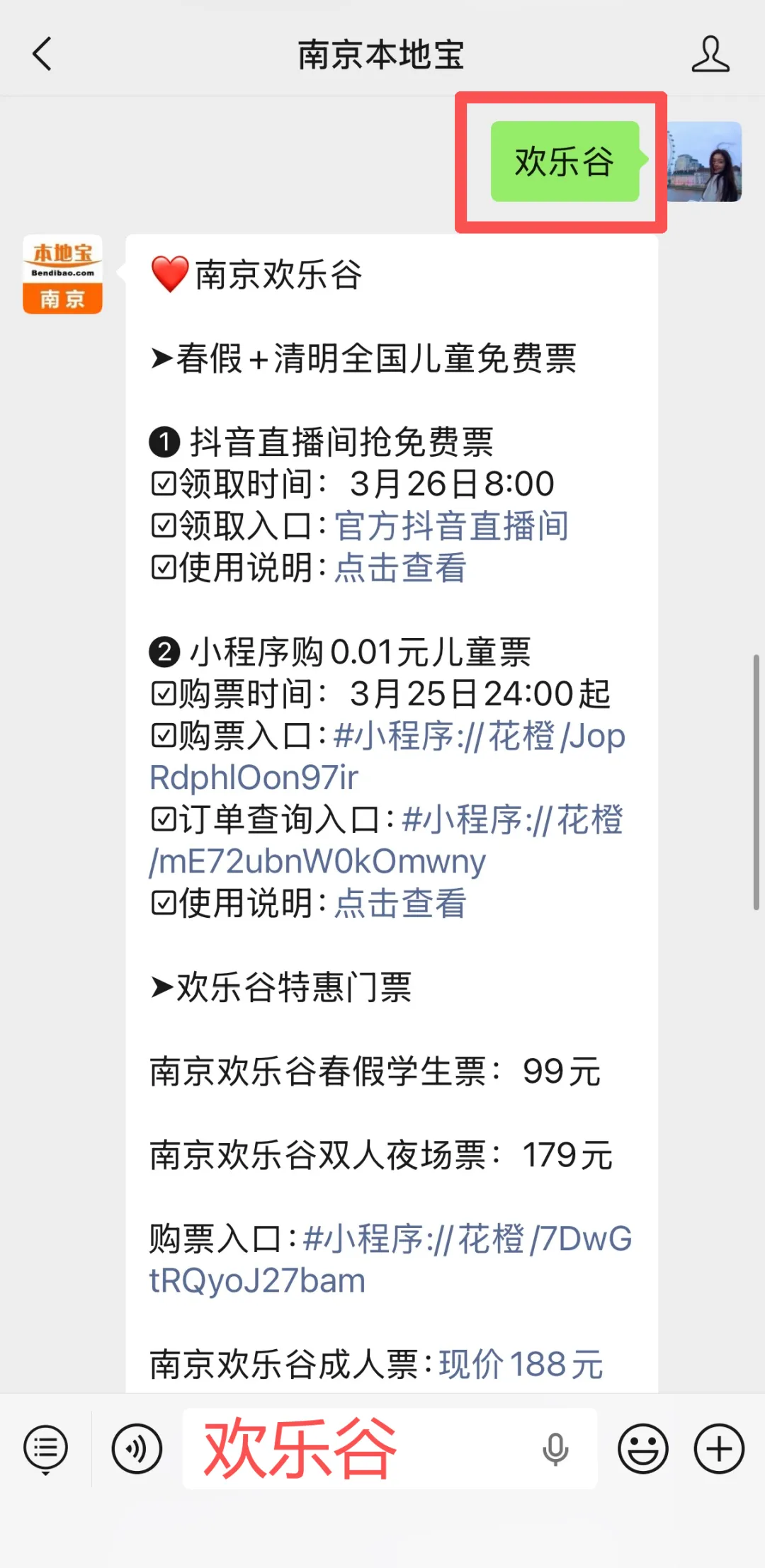 或者扫描下方二维码,关注南京本地宝,后台对话框回复【欢乐谷】即可获取快捷领取入口、领取指南、游玩攻略等。