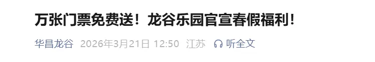 南京华昌龙谷也发放万张免费门票