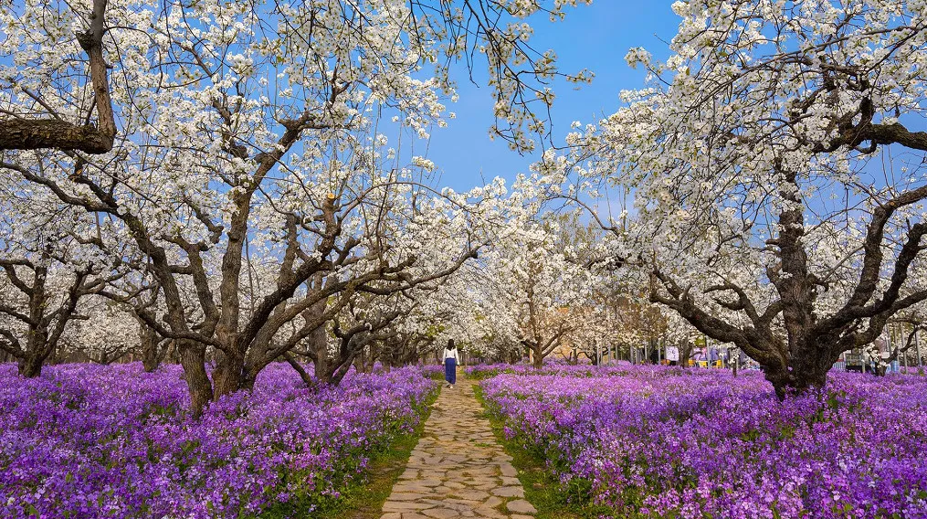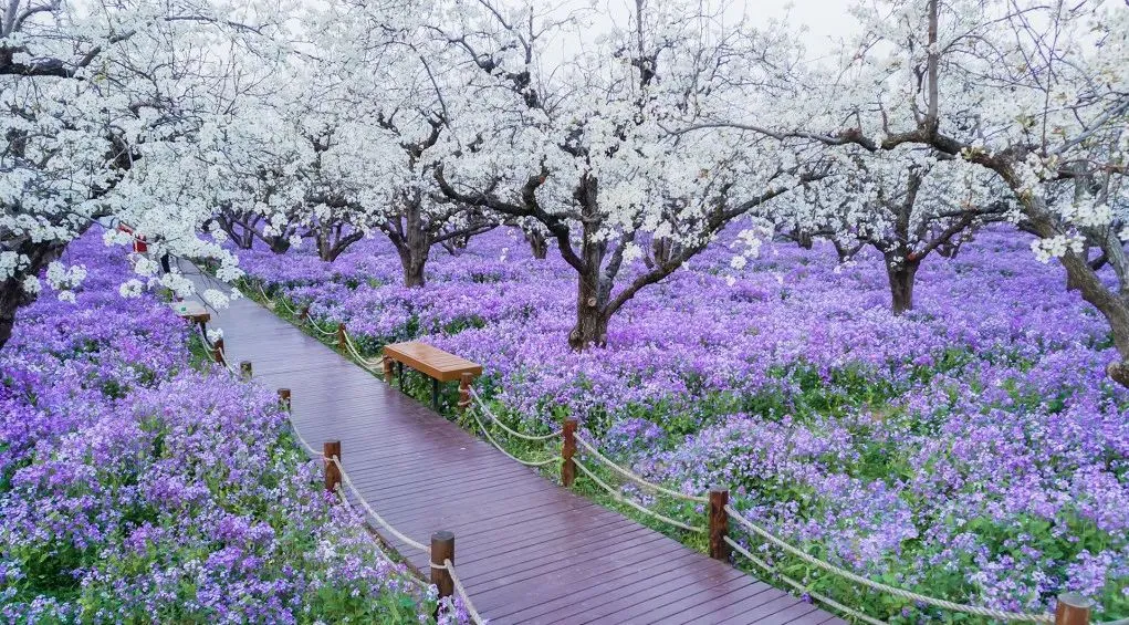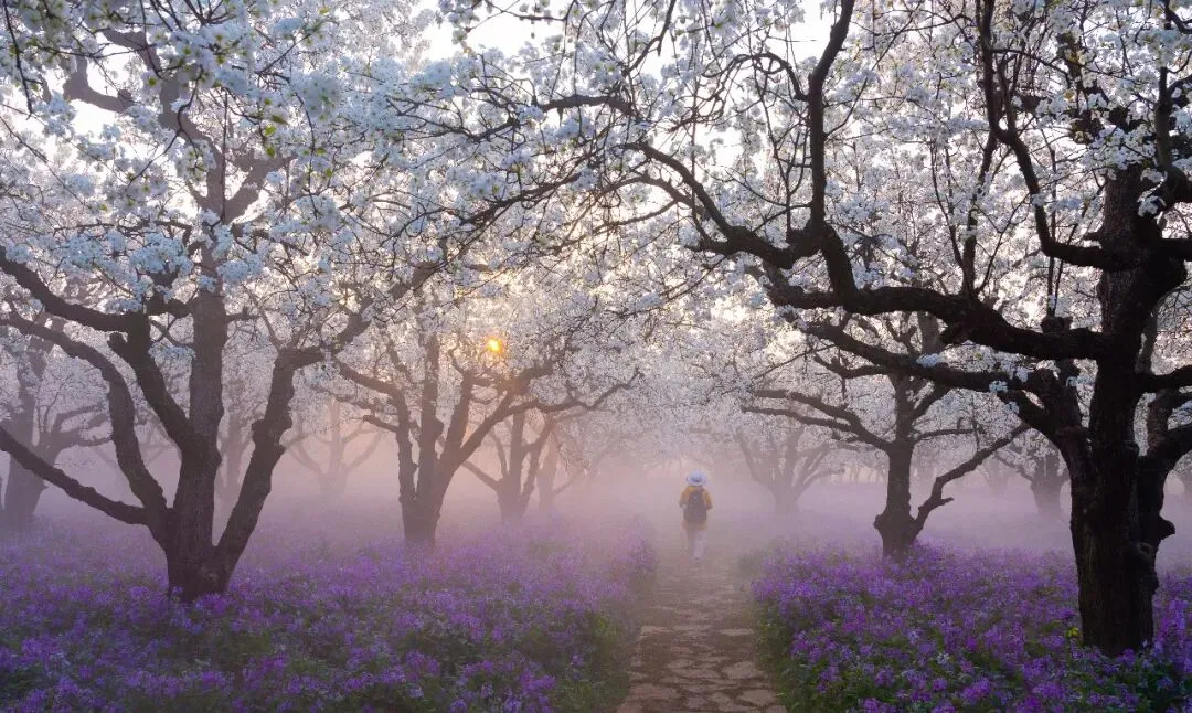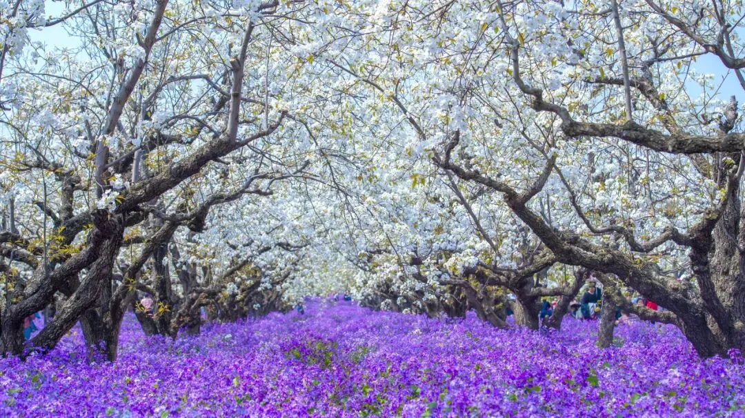 全国独一份的“梨兰CP”,5000余棵百年梨树与二月兰同框盛放,满树白花胜雪,遍地紫雾朦胧,随手一拍都是大片,今年的梨兰会,你准备好了吗?