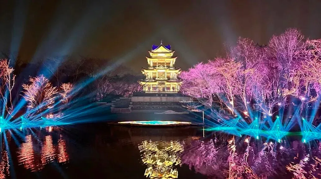 华灯初上,鼋头渚的夜晚格外迷人。在樱花树下穿梭,看着这些樱花,享受着浪漫樱花带来的视觉盛宴!夜色为樱花镀上滤镜,光影交错。白日的喧嚣褪去,只剩花瓣与星光的私语!随风飘落的花瓣点缀着夜晚的天空,像极了冬日里的皑皑白雪。樱花雨中漫步,别有一番趣味。这是樱花留给春天最后的浪漫,不负春光,总要在春天邂逅一场樱花雨吧!