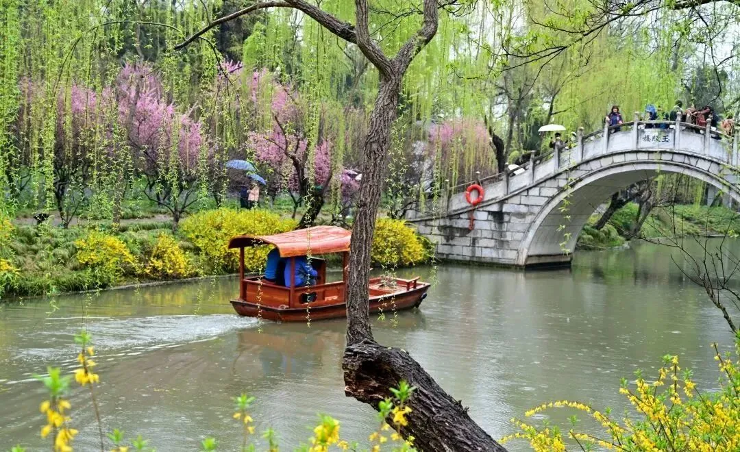 瘦西湖:春季来扬州,必游瘦西湖。在这里,你既可以沿河而行享受自然美景,或是走进亭台楼阁,品味历代文人墨客的诗画墨宝,你也可以坐上船,感受当年乾隆皇帝游湖的逍遥心情。