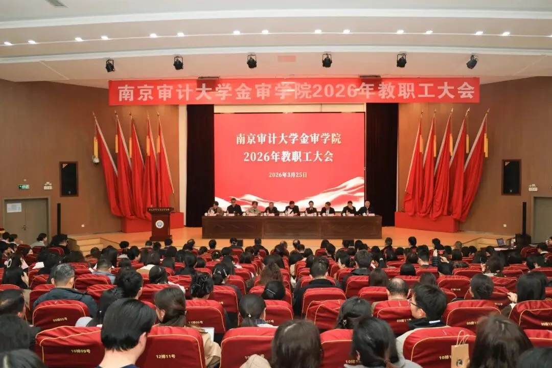 3月25日,南京审计大学金审学院2026年教职工大会在图书馆报告厅隆重召开。理事长胥正洋、副理事长侯思画、全体校领导、中层干部及教职工代表齐聚一堂,大会全面总结2025年学校办学发展成效,表彰先进典型,部署2026年重点工作任务,签订年度重点工作目标责任书,为学校“十五五”开好局、起好步凝聚奋进力量、明确行动方向。大会由党委书记王军主持。