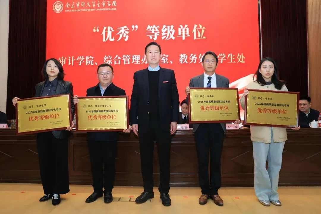 校长俞安平作题为《坚定信心 鼓足干劲 攻坚克难 善作善成 确保“十五五”开好局起好步》的学校工作报告。报告分为2025年工作回顾和2026年主要工作任务两部分,从党建引领、招生就业、人才培养、立德树人、队伍建设、开放办学、支撑保障、内部治理八大方面,系统梳理了2025年学校取得的系统性突破和标志性成果,包括学校党委获南京审计大学党委2025年度二级党组织党建成效评价考核优秀,普本报到率97.03%创历史新高,2025届毕业生就业率95.25%,3个新专业获批招生,教师在省级教学创新大赛获二等奖实现“零的突破”等。报告同时清醒指出学校发展面临的外部挑战、自身短板以及当前学校亟待破解的核心矛盾。在2026年工作部署中,报告明确学校工作总体思路,围绕内涵建设与提升人才培养质量主线,聚焦“转设、评估、申硕”三大目标任务,从十个方面部署42项重点工作,为学校加快建成“特色鲜明、国内知名、高水平地方性应用型民办本科院校”明确具体路径。