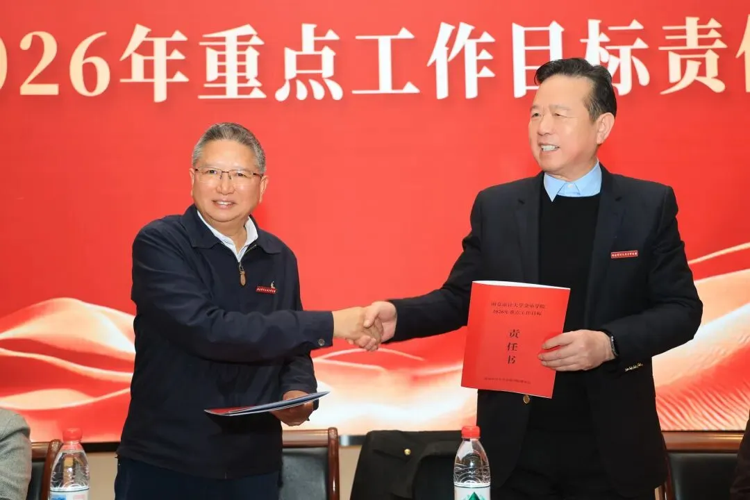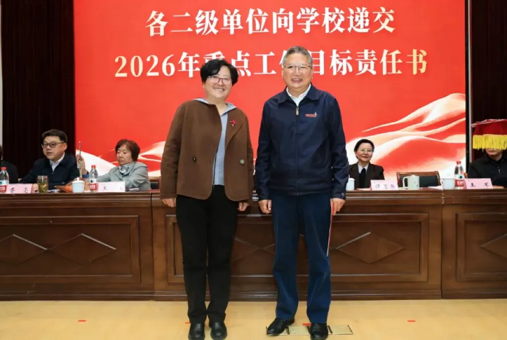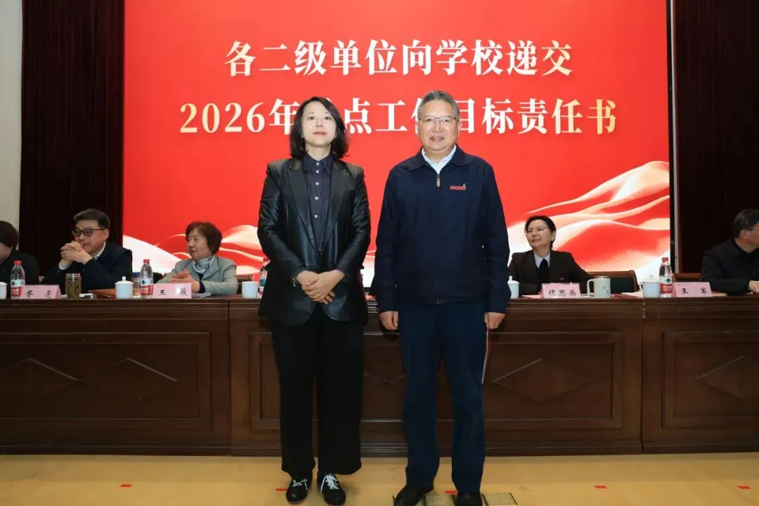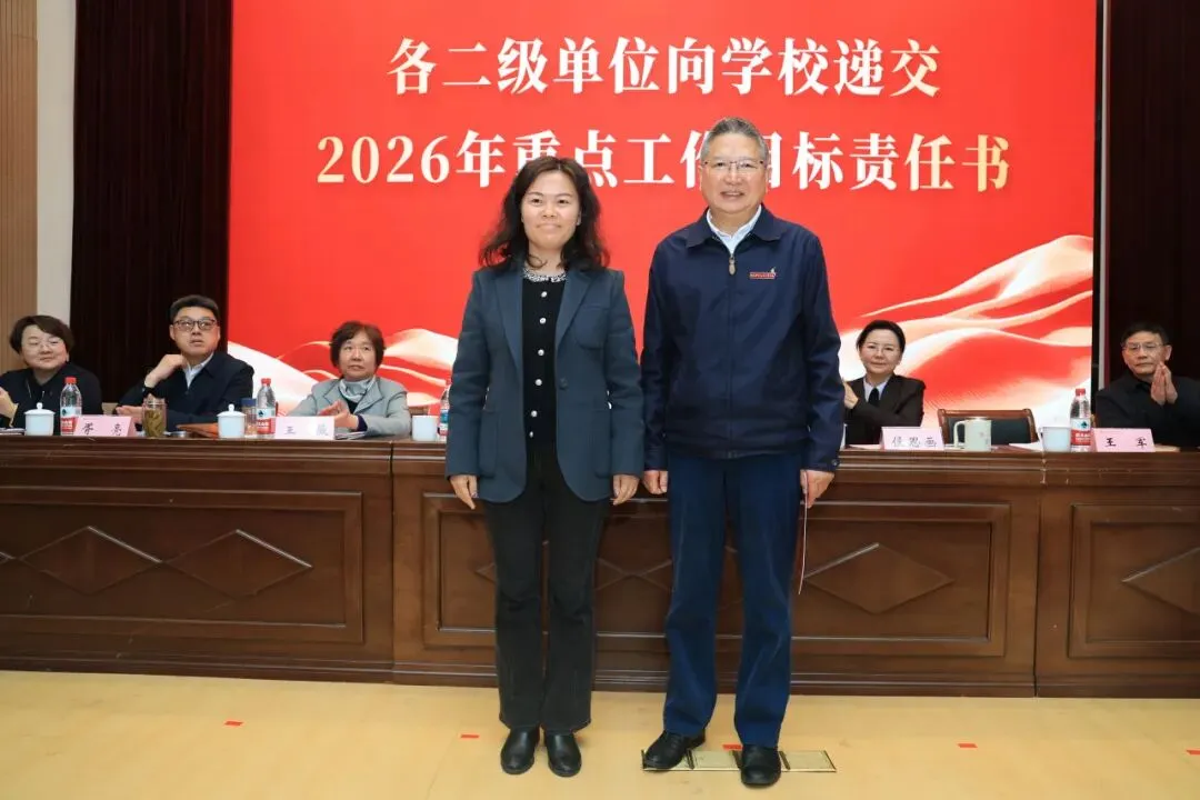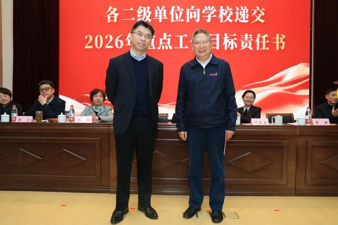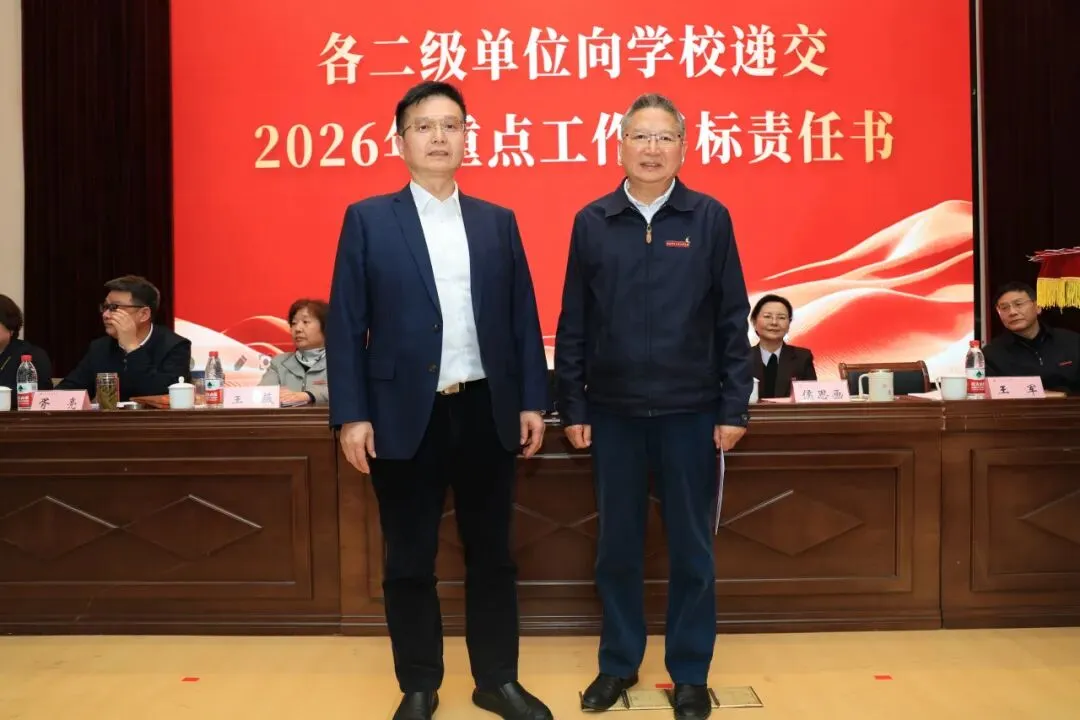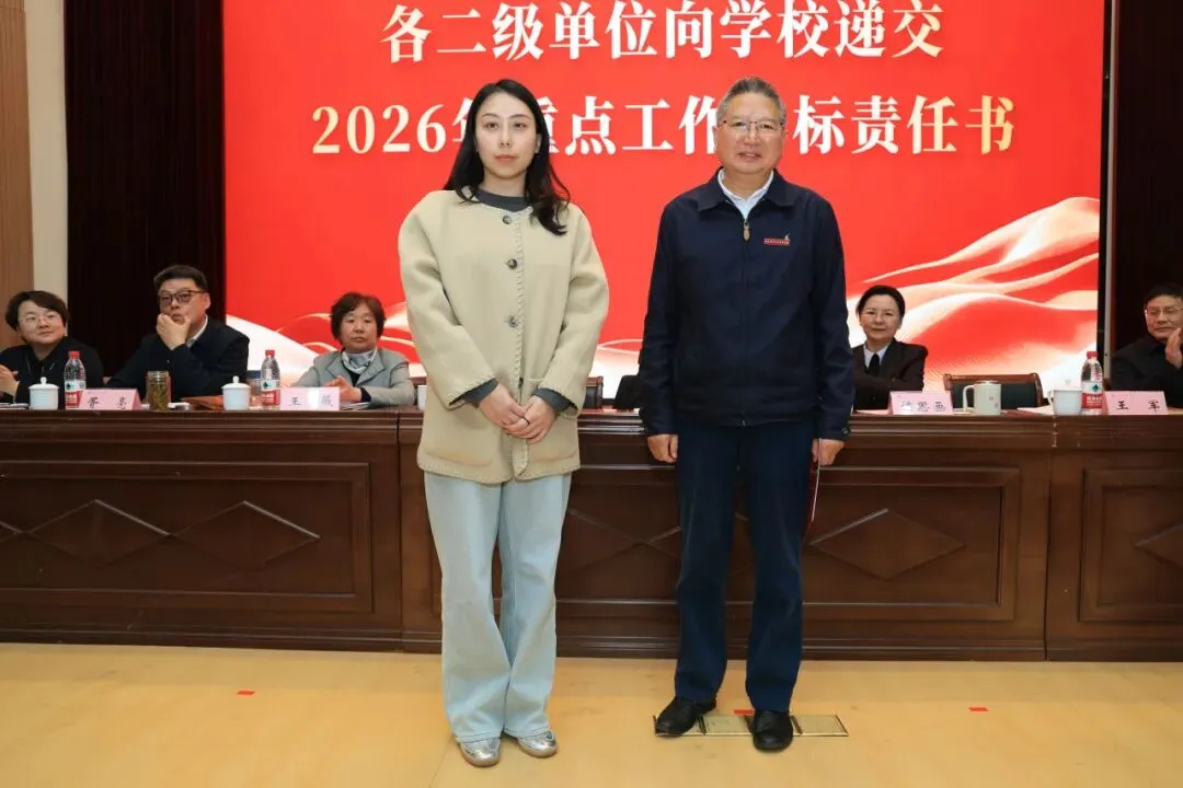 理事会与学校签订2026年重点工作目标责任书,各二级单位依次向学校递交责任书,落实责任,确保年度目标任务落地见效。