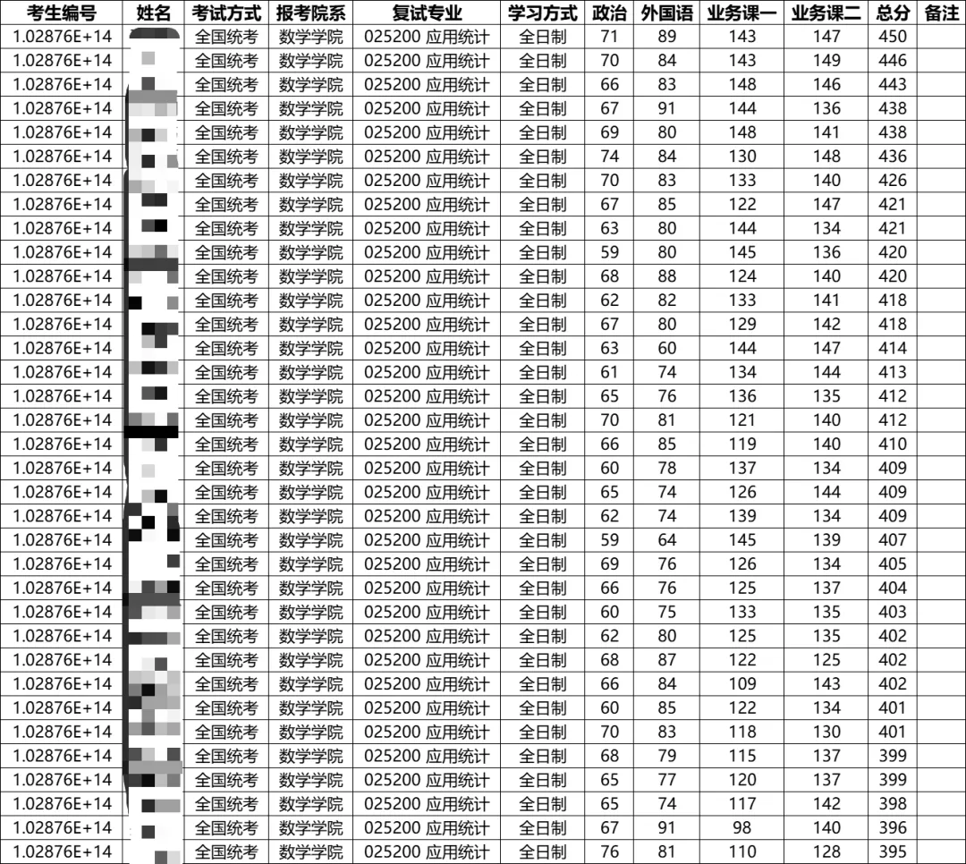 南京航空航天大学数学学院应用统计一志愿进复试35人,最高分450分,最低分395分