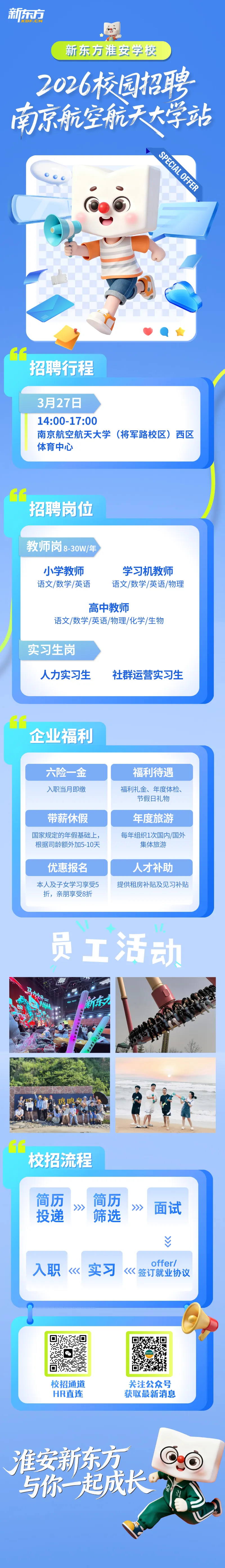 >3月27日南京航空航天大学 | 新东方26届春招双选会 将军路校区-西区体育中心见!