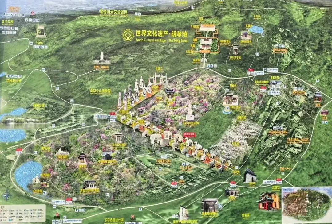 钟山风景名胜区之明孝陵景区简介:......明孝陵自起点下马坊至玄宫所在的宝城,纵深近3000米,沿途分布着大金门,大明孝陵神功圣德碑碑楼,神道石像生,棂星门,享殿,方城明楼等30多处不同风格,用途各异的建筑物和石雕艺术品。明孝陵景区还包括明东陵,梅花山,梅花谷,红楼艺文苑,紫霞湖等著名景点。