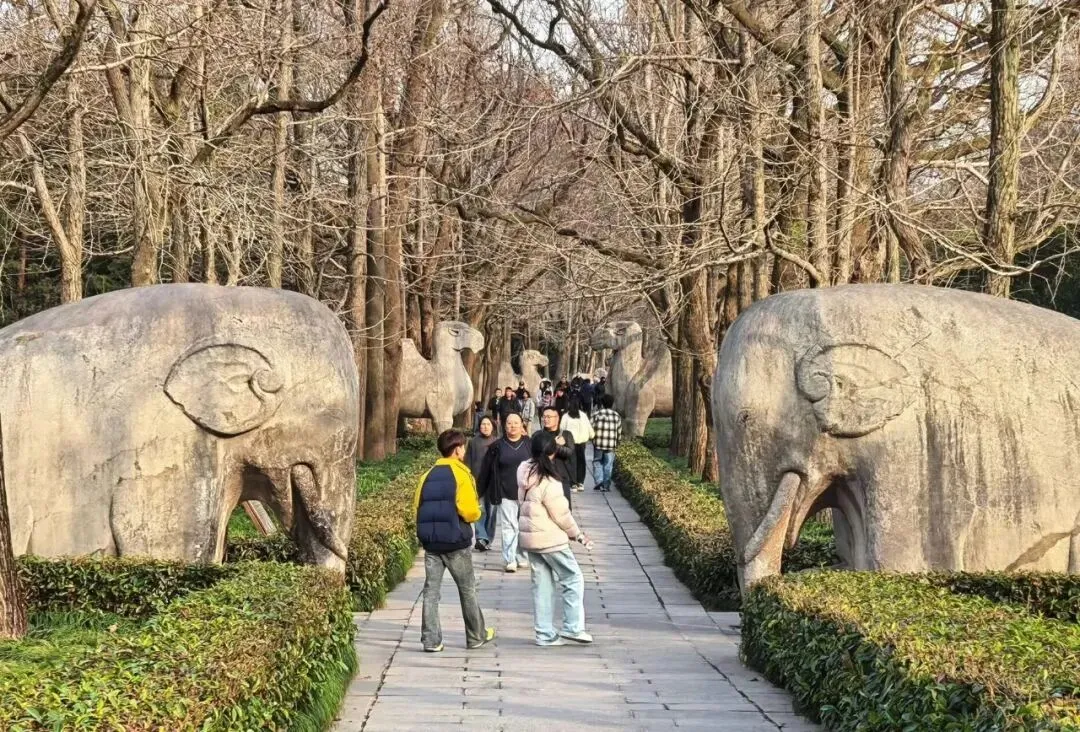 石像路是明孝陵标志性路段,600米神道两侧矗立着六百多年的石兽