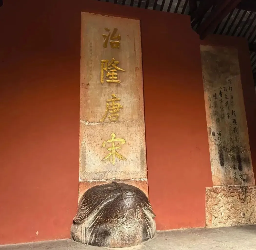 1699年康熙第三次南巡谒陵,见墙垣多倾圮,下旨"交与江苏巡抚宋荦,织造郎中曹寅会同修理",并御书"治隆唐宋"四字,勒石制碑,以垂永久。