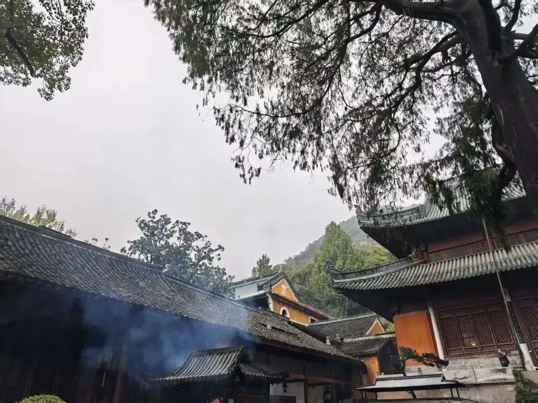 青苔爬满了檐边,藤蔓轻缠,雾色弥漫,一整个春天的绿意、潮湿与安宁,包裹着这座古刹千年的静谧。