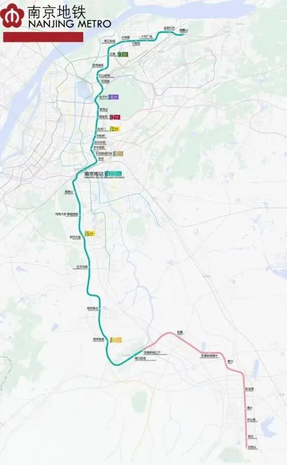 走向:北起栖霞山站,途经栖霞、玄武、秦淮、雨花台、江宁5大区,串联栖霞山、南京经开区、燕子矶、光华门、南部新城等核心板块,南至南京南站