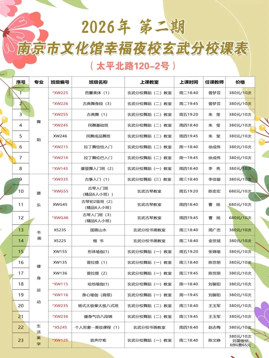 标注“玄武分校”的上课地点为:玄武区文化馆太平北路120—2号(玄武区少年宫大院右楼)文化馆培训部2楼、3楼。