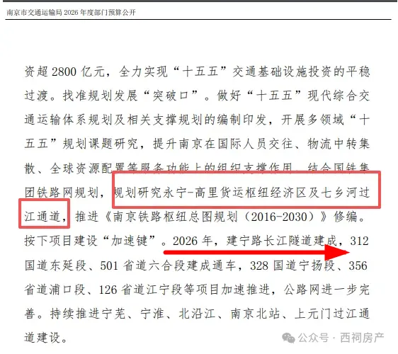 今年3月公布的《2026年度南京市交通运输局部门预算公开》里,提及“2026年,建宁路长江隧道建成”。
