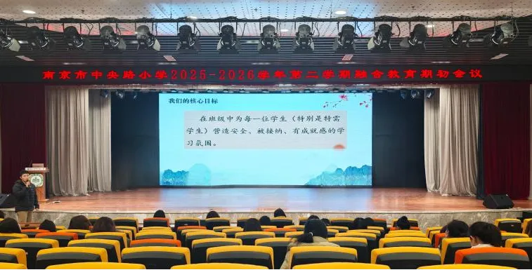 为持续推进融合教育高质量发展,近日,南京市中央路小学召开2025-2026学年第二学期融合教育工作会议。本次会议由袁卓然副校长主持,全体教师齐聚一堂,围绕“核心素养导向的融合教育支持场域”建设,明确本学期融合教育的重点方向与行动路径。