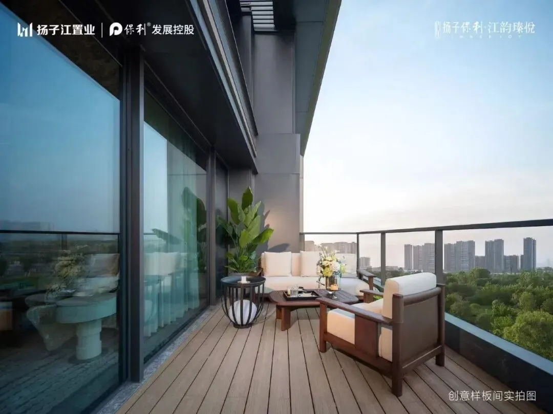 建面约217㎡顶跃创意样板间实景图,仅供参考,实际以交付为准约22㎡观景露台+约70㎡的顶层环绕式露台!璞园的顶跃洋房,给到了前所未有的近100㎡双露台!你知道这意味着什么吗?你可以想象未来的生活场景:白天,可以在连通约6.4米挑高客厅的约22㎡观景露台里,约闺蜜来一场云端下午茶。