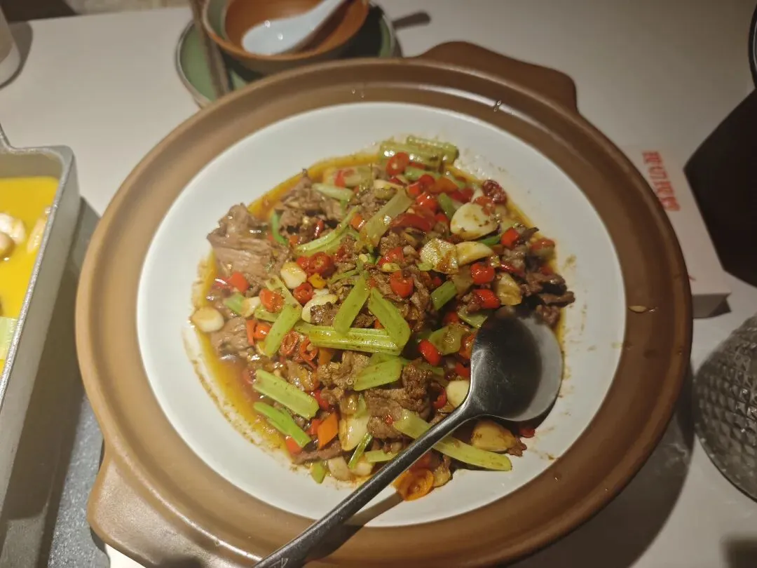 今天有事从如皋过来南京浦口,离附近的一个叫虹悦城的商场很近,遂找了里面一家湖南菜的小馆子,叫桃花源记。团购了一个168的三到四人套餐。包括一壶红茶,一道酸辣牛蛙,一道爆炒牛肉,一道回锅肉炒菌菇,还有一道清炒油麦菜。每道菜都很不错,锅气都很足。小炒黄牛肉很好吃但是对我来说太辣了,爱吃的辣的一定喜欢。其他几道都很好吃,每道菜都很惊艳,我最喜欢的是回锅肉炒菌菇,菌菇被回锅肉的煸出来的油浸润着,非常香。每道菜都很下饭,唯一美中不足的是肉菜都太精致,分量太少了。两个男生点这个三到四人份的套餐刚刚好。所以我觉得他标的三到四人套餐应该是特指女生。其他方面没毛病,都很不错。