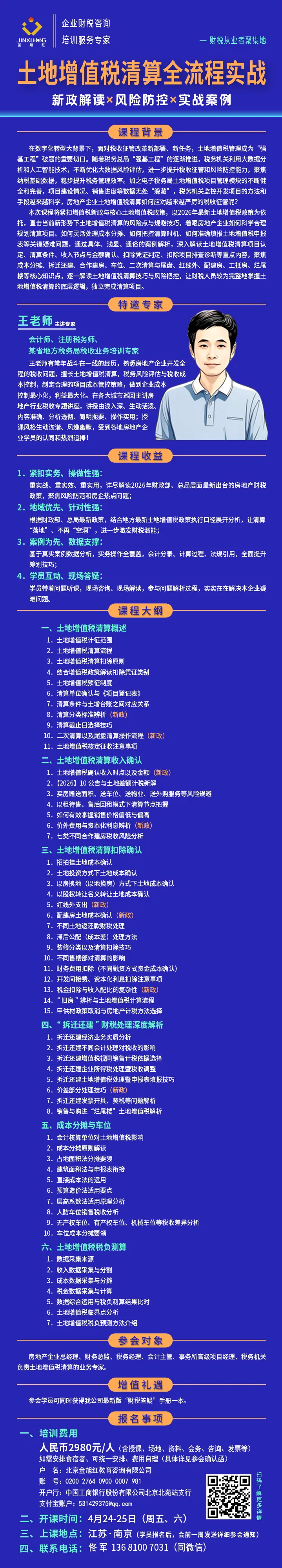 【赤峰.4月25-26日】“强基工程”形势下土地增值税清算应对与税务合规实战