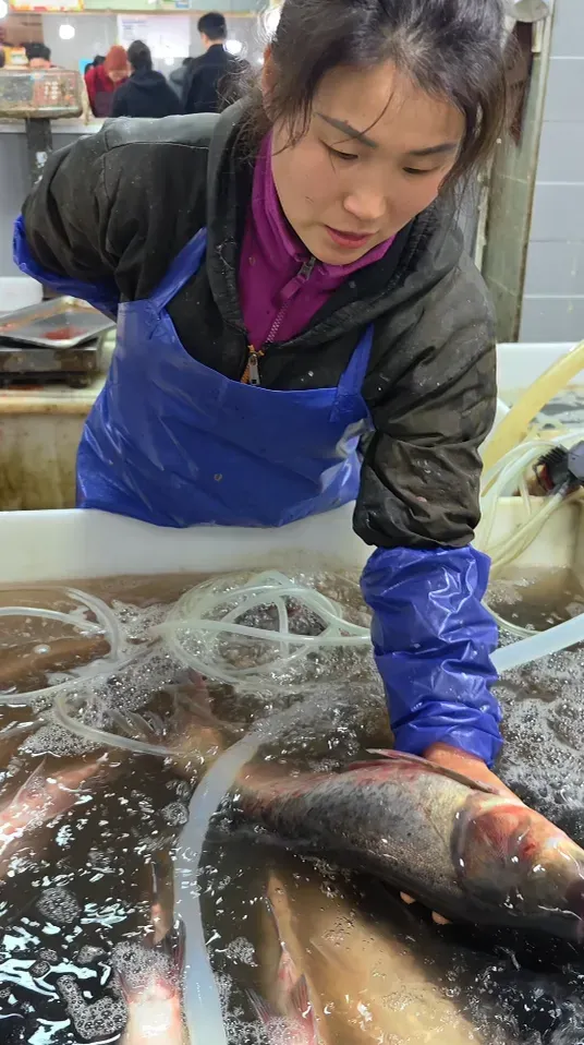 反而那些看起来蔫蔫的,身上有点破损、被撞得有血丝的鱼,才更安全。老板解释说:“没打麻药的鱼,在运输、装卸的时候,难免会互相碰撞,身上有划痕、血丝很正常,说明它是‘原生态’的,没被处理过。而打了麻药的鱼,全程‘休眠’,不会乱撞,鱼鳞自然整齐完好,卖相也更好。”