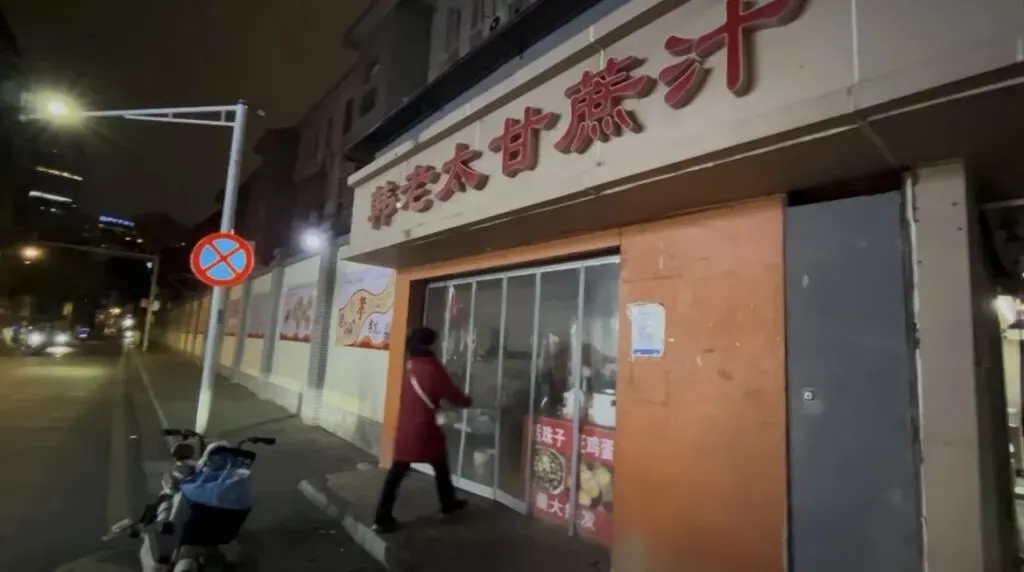 人流如潮水般涌向这里,海南、重庆、江西、内蒙古、新疆……甚至还有不少外国人,他们来买咖啡,拍视频,甚至长时间待在店外直播。“店门口的长龙,排到了50多米。”对面的烧烤摊主老徐见证了“韩老太甘蔗汁”的红火。