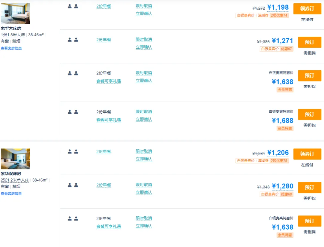 高级标间(无窗):599元/人