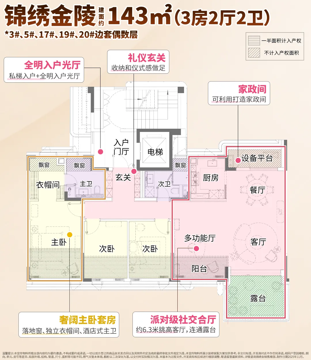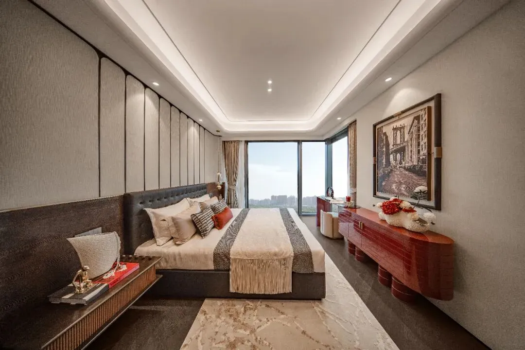 建面约143㎡,成功人生当有一套。从玄关起就做足派头,建立大宅秩序。约6.3米的挑高客厅,尺度不止于大,当你在现场,会GET什么叫“豪宅的价值一半在窗外”,情绪价值得到极大满足。主卧套房,尺度不输河西200㎡档产品,独立衣帽间设计,同面积段罕见。设备平台可利用打造为家政间。