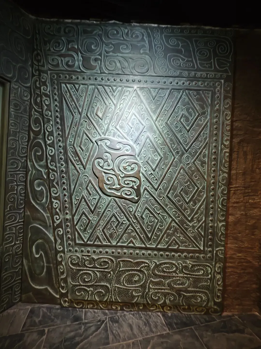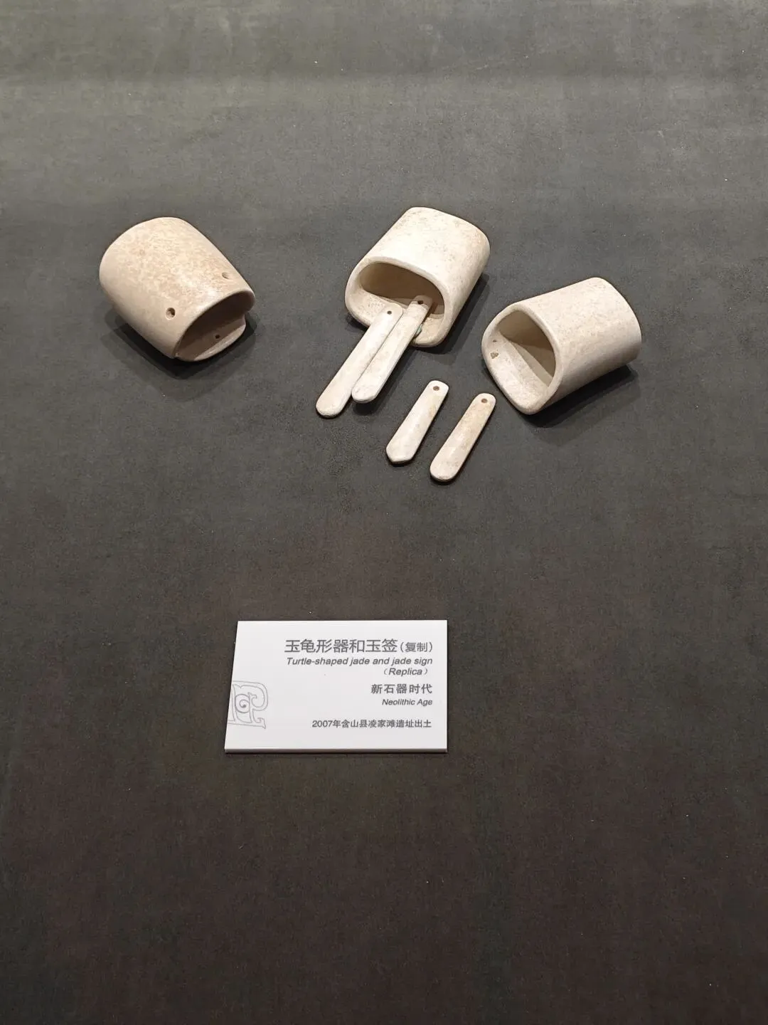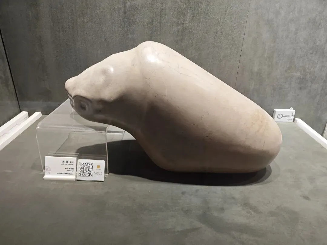 几乎没人,我又看了一些远古时代的文物,左前方电视上播放的动态画面吸引了我,一个玉人然后是玉牌的详细介绍,快步走过去原来是这次想去却无法安排的凌家滩遗址文化主题,出土于马鞍山辖区的含山县,从1987年开始认真细致的考古工作持续了30多年,有重大历史发现可以说把马鞍山地区的远古断代向前推进了一千年,凌家滩文化年代确定为5300多年前,这真是马鞍山博物馆给我的一个厚礼,我想好好观看一遍完整影片,准备向后退几步找到最佳距离,这一退不打紧着实吓得要跳起来,原来脚下是凌家滩遗迹的分布模型缩小版复原,玻璃地面之前我没注意到,突然看见是透明的空洞本能地收住脚步。一个好玩的小插曲!我认真看了全部纪录片,基本了解到这座大型远古遗址群的历史价值和主要藏品,马鞍山博物馆里主要是复制品,于我并无大碍因为都1:1比例严格复制,想想不需要跑几十公里路亲临凌家滩考古遗址公园和博物馆,就可以概览几乎全部精华文物,不亦乐乎不亦快哉。下面是一组凌家滩文物图片↓