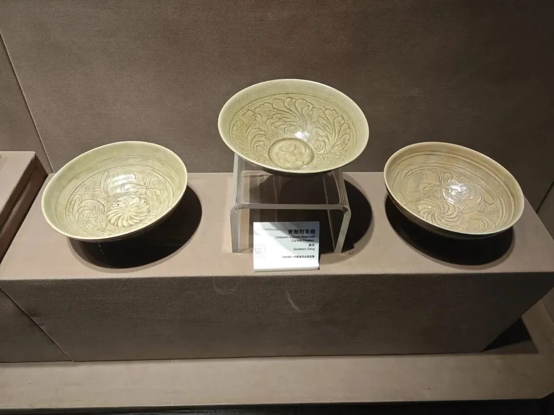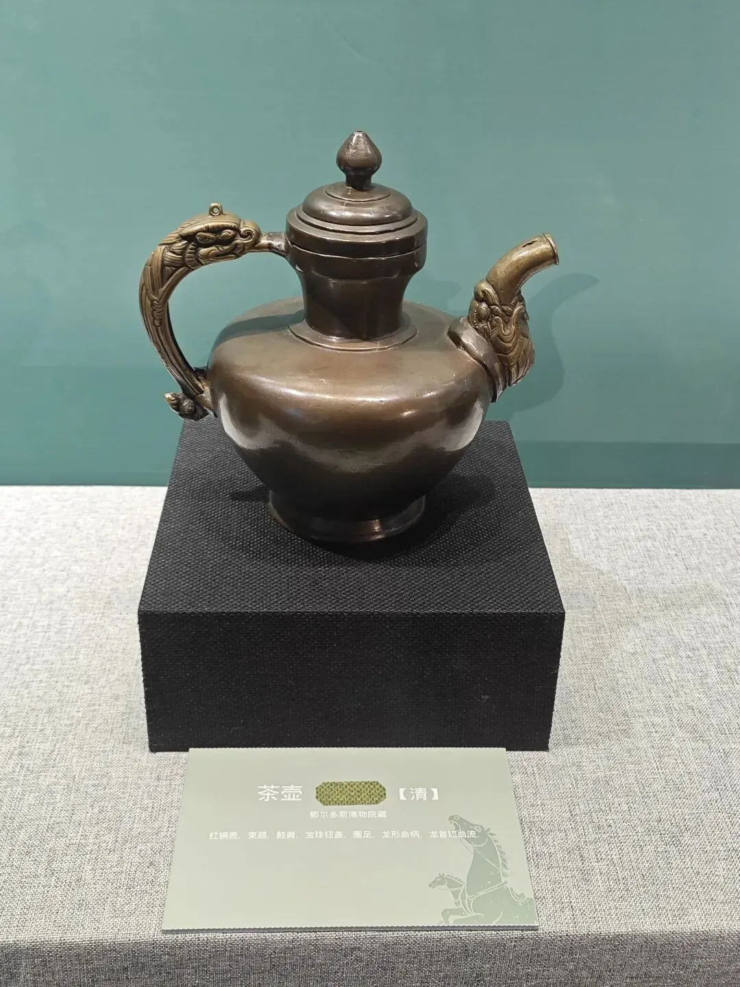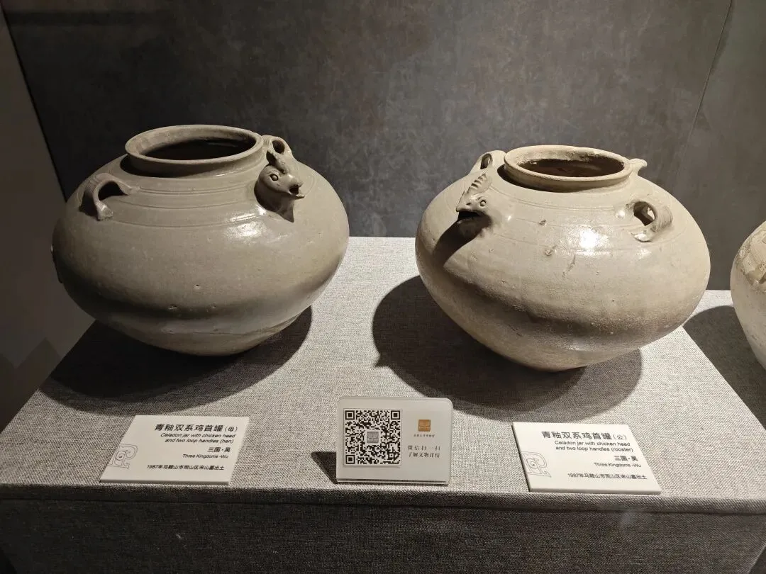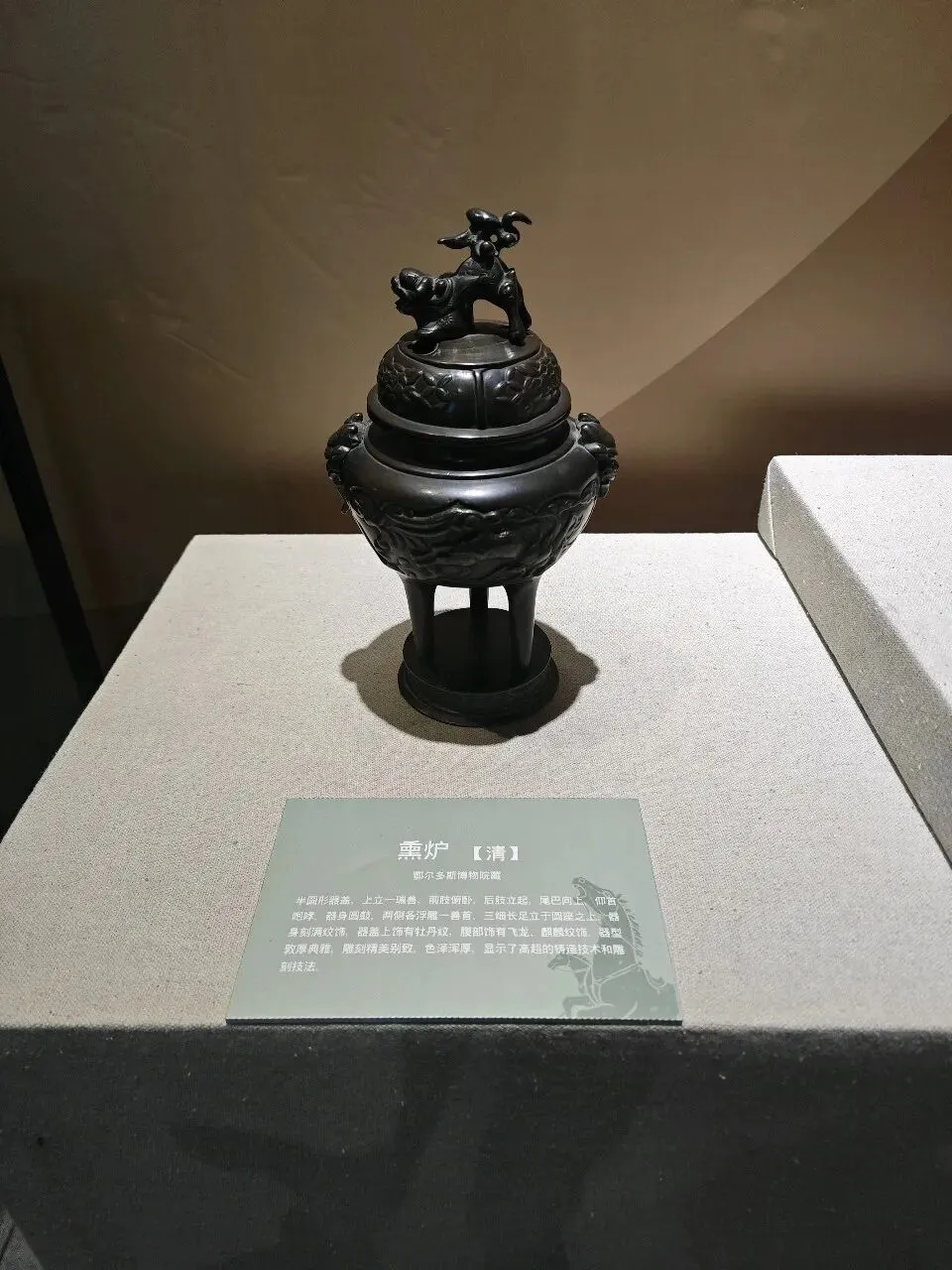 (凌家滩共出土6个玉人,跟著名的红山文化和良渚文化相关联)意犹未尽地看完了凌家滩部分展览,心想真是偏得呢,转眼前面几件商周汉代文物又在向我招手了,🈶精美的兽足鼎,🈶细致的勾连云纹铙,🈶别致的⛓链条提梁壶,🈶带“宜候王”铭文的特别铜洗,云纹铙还制作了平面复制品非常养眼。馆内的参观者以个位数计量,幸运的我得以尽情尽兴绕着圈360度全面欣赏观看展品,很久没想到这种VIP级别待遇了。真的太开心啦!前面进到这间题为“碧水东流至此回”的马鞍山历史展厅门时,就远远看到斜对面展厅门内颜色对比鲜艳的布置。转完这个展厅出门直接连到新的展厅,原来这是来自内蒙古鄂尔多斯博物馆的精品特展,从2026.2.10-4.24,老天真是厚待我!还在正月里的最后一天,又送了一份大大的年礼,因为疫情期间的2021年夏天,我和外甥女小妞约在呼和浩特见面,开启内蒙游,走过包头来到鄂尔多斯,只看了壮观的音乐喷泉,住处突然变成密接区待遇危险逼近,博物馆根本没来得及看,只好第一时间快速遗憾离场。没想到啊没想到!五年之后竟然在马鞍山博物馆弥补遗憾,补上了当年不舍放弃的博物馆精品展。真是东方不亮西方亮的惊喜和幸运!看了特展介绍,鄂尔多斯在蒙语中的意思是“众多的宫殿”,位于内蒙古西南部,毗邻陕甘宁三省区,记得2021年我从那里直飞银川很近的。这片神奇的土地是远古文化的发源地之一,号称河套文化时间早在7万年前,后面历经与中原历代政权和各民族的融合,形成了各民族共生的农耕、草原和黄河文化。所以鄂尔多斯博物馆的特展丰富多样很有看头,展览主题为《九曲黄河,马背长歌》。详见下图↓↓一楼参观完毕,接着上到二楼,参观马鞍山博物馆的主打藏品六朝青瓷部分。六朝时期历时近400年,均定都南京,而马鞍山占地利之便,被称作京畿之地,成为拱卫京师的军事重镇;且原来北方的士族大家纷纷南下,带来文化艺术和高雅精致的生活方式,使马鞍山所在之处文风日盛、尽显六朝风流。这个时朝的青瓷全部产于江南地区,窑口多器型丰富,一般熟知的有越窑、瓯窑和洪州窑等。产品用途遍及日用、陈设、文房和明器,而且工艺水平高,设计巧妙,形状各异,非常吸引人,爱喝茶的我还欣赏了好多精美别致的茶具。虽然逛的有点小累,但意犹未尽兴致勃勃,因为收获多多,过了眼瘾美丽了心情,下午雨中游过采石矶后,坐动车奔赴三月春游最后一个目的地南京了。两个城市动车程17分钟,车票15元,我要为心仪太久的南京博物院做好充分准备,提前住到附近也早早预约了参观门票,只等3.19的看馆饕餮大餐啦。