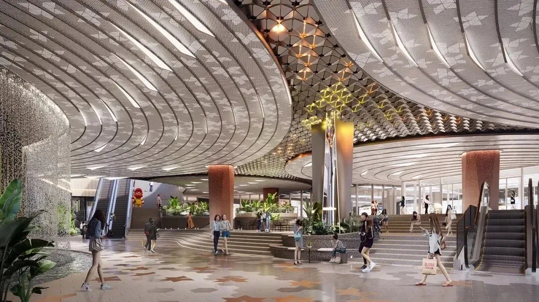 位置:南京市玄武区红山新城核心,大壮观路北侧,地下与在建地铁6号线、9号线红山新城站无缝衔接。整体综合体体量:部分地块总建筑面积约23.6万平方米(中建二局承建部分);设计总面积包含购物中心、服务式公寓(3万平方米)、商业街(4万平方米)、酒店(0.9万平方米)、办公塔楼(8.1万平方米,140米高)等。开发主体:招商蛇口(业主),设计由伍兹贝格(WoodsBagot)负责建筑及室内设计全过程。开业时间:2025年5月28日启动测试运营/内测,2025年6月26日正式启幕。图片来自:品牌新物种、伍兹贝格、IAM建筑空间摄影