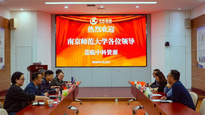 3 月 25 日,南京师范大学科学技术研究院院长、江苏海洋经济技术研究院院长徐敏,海洋科学与工程学院院长汪亚平一行到访中科资源,与中科资源党委书记、董事长冯桂强就深化产学研合作、推动科技成果转化等议题开展座谈交流。