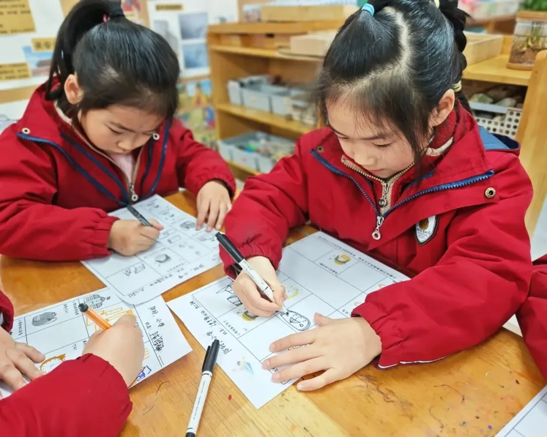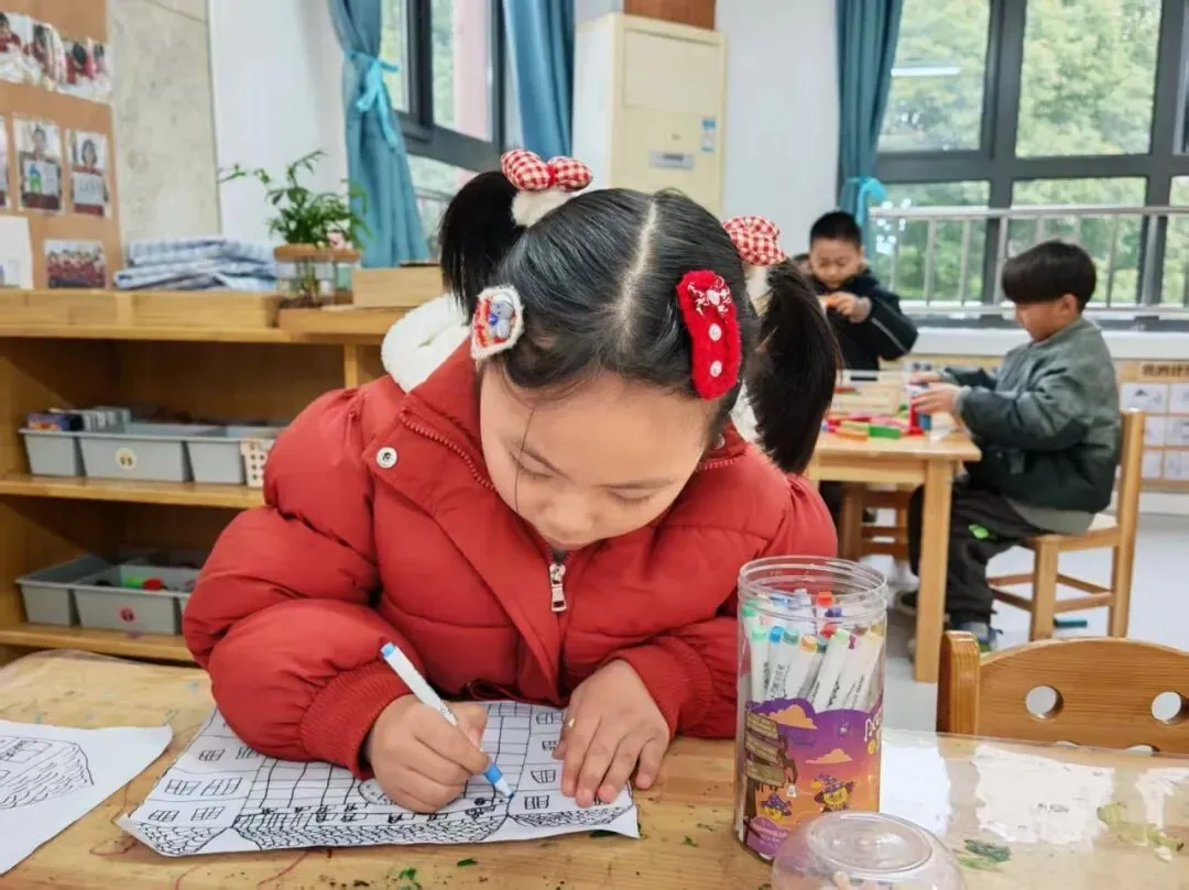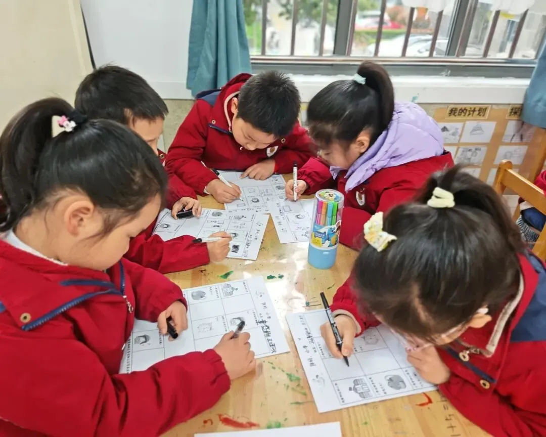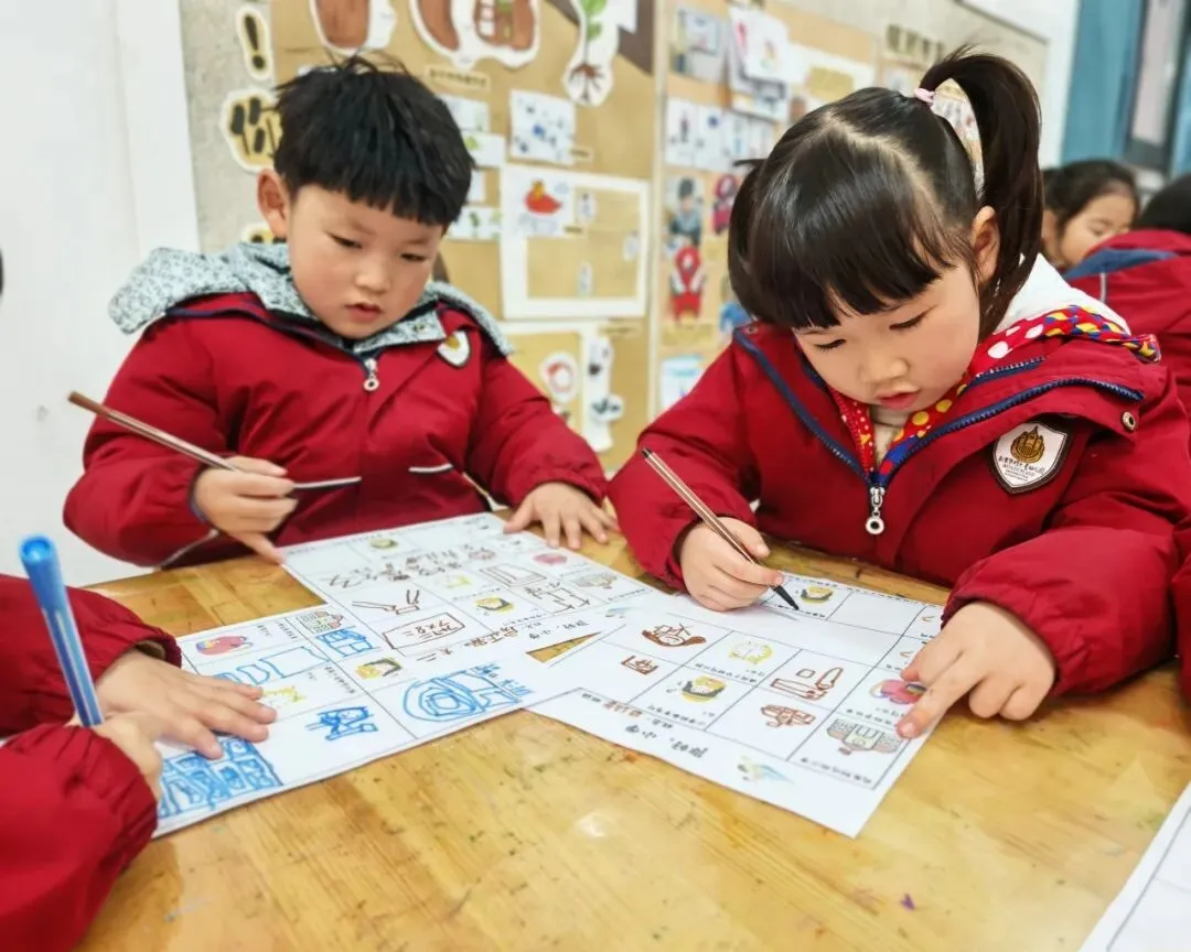 在调查中,孩子们认真探索着小学的模样:有的孩子仔细描绘着家附近的小学校园,有的画出了想象中教室里的黑板与课桌椅,还有的在书包里填满了课本、铅笔和橡皮。他们用稚嫩的笔触,勾勒出对课间十分钟的憧憬,也认真思考着小学与幼儿园的不同,勇敢写下自己最好奇、最担心的问题。